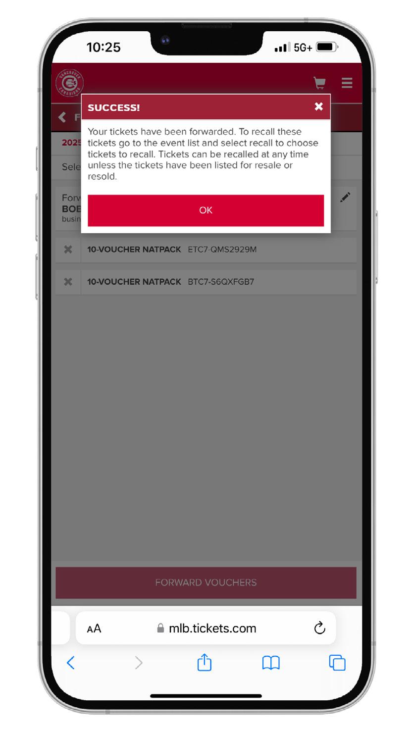 WHAT IS FORWARDING? FORWARDING TICKETS THROUGH YOUR MY C’S TICKET ACCOUNT IS THE BEST WAY TO DISTRIBUTE YOUR SEASON TICKETS. WHETHER YOU ARE GIFTING TICKETS TO A FRIEND OR FAMILY MEMBER, THANKING SOMEONE FOR A JOB WELL DONE, OR LOOKING TO TREAT A POTENTIAL BUSINESS CLIENT TO A GAME AT THE ‘NAT, FORWARDING TICKETS TO THE GAME IS A CONVENIENT WAY TO DIGITALLY DISTRIBUTE YOUR TICKETS. ALL YOU NEED TO FORWARD YOUR TICKETS IS THE FIRST AND LAST NAME OF THE TICKET RECIPIENT, AS WELL AS THEIR EMAIL ADDRESS.