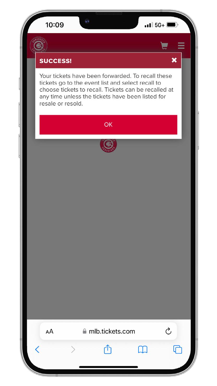 7. After clicking “FORWARD TICKETS,” a confirmation message will appear, verifying that the ticket(s) have been successfully forwarded.