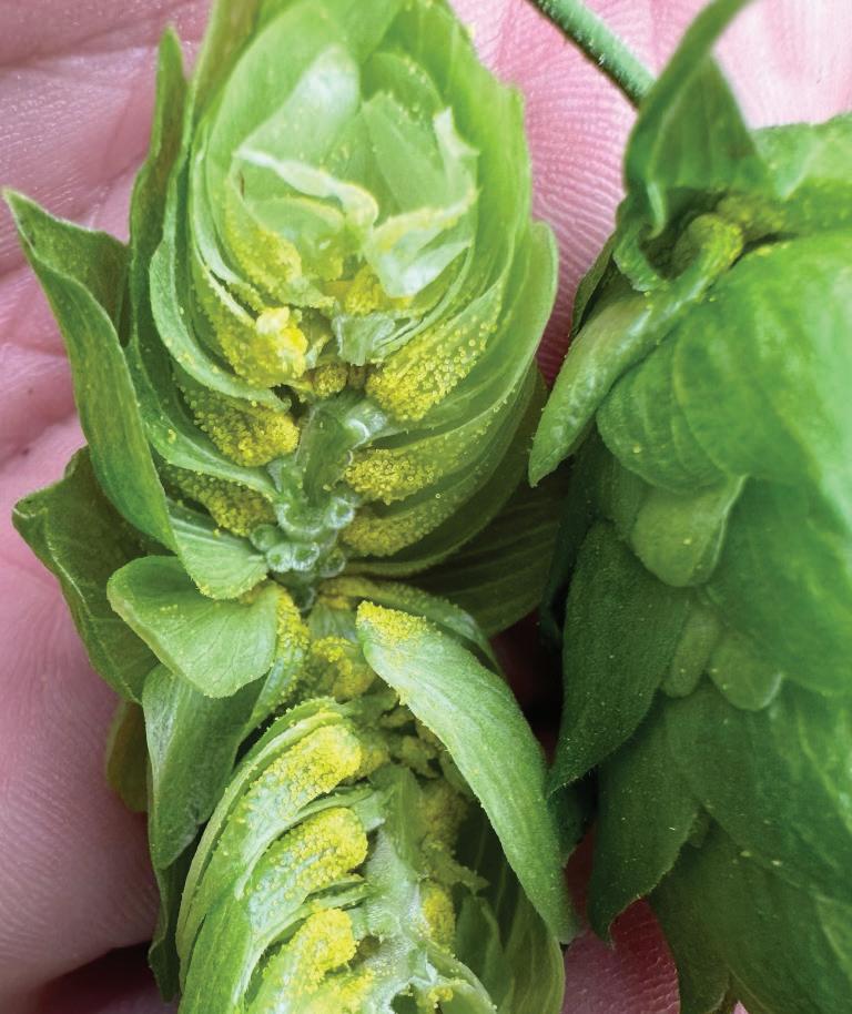 Like an artichoke, the stuff you want from hops is at the bottom of each petal. Yellow goodness. Photo courtesy of The Paris Beer Co.