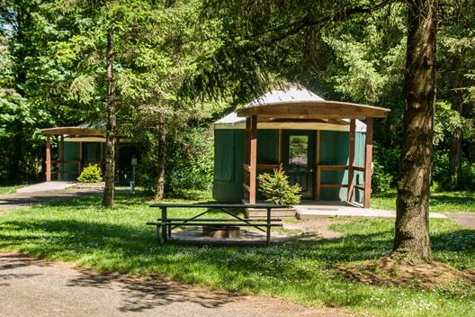 Left: Paradise Point river access, Right: Paradise Point yurts
