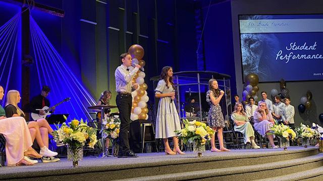 Below: Eighth grade students from Agape Christian School share their talents at the 2023 Eighth Grade Promotion.