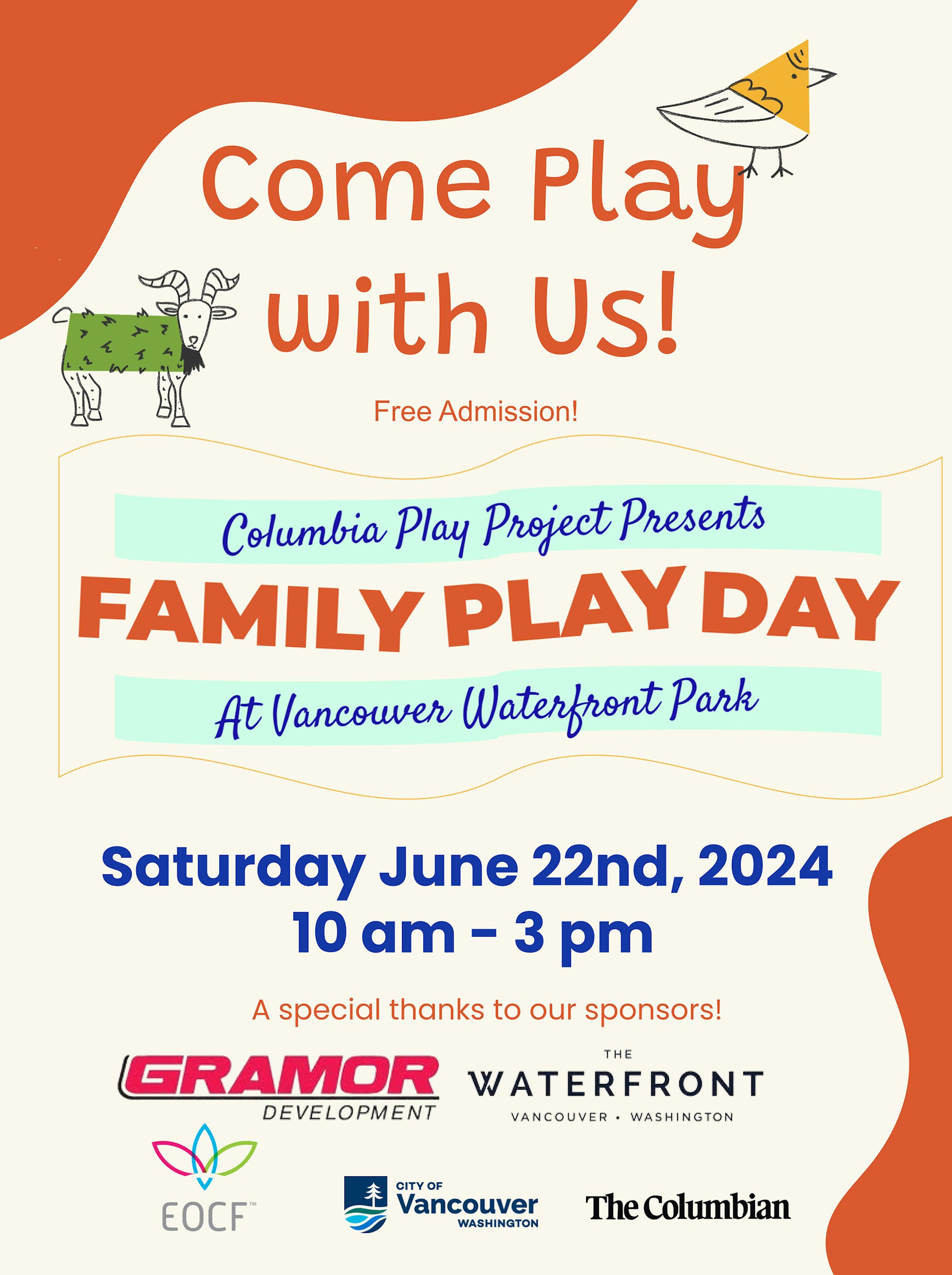 Columbia Play Project Family Play Day at Vancouver Waterfront Park, Columbia Way and Esther St., Vancouver. Come play with Columbia Play Project at Vancouver Waterfront Park! 10 am-3 pm