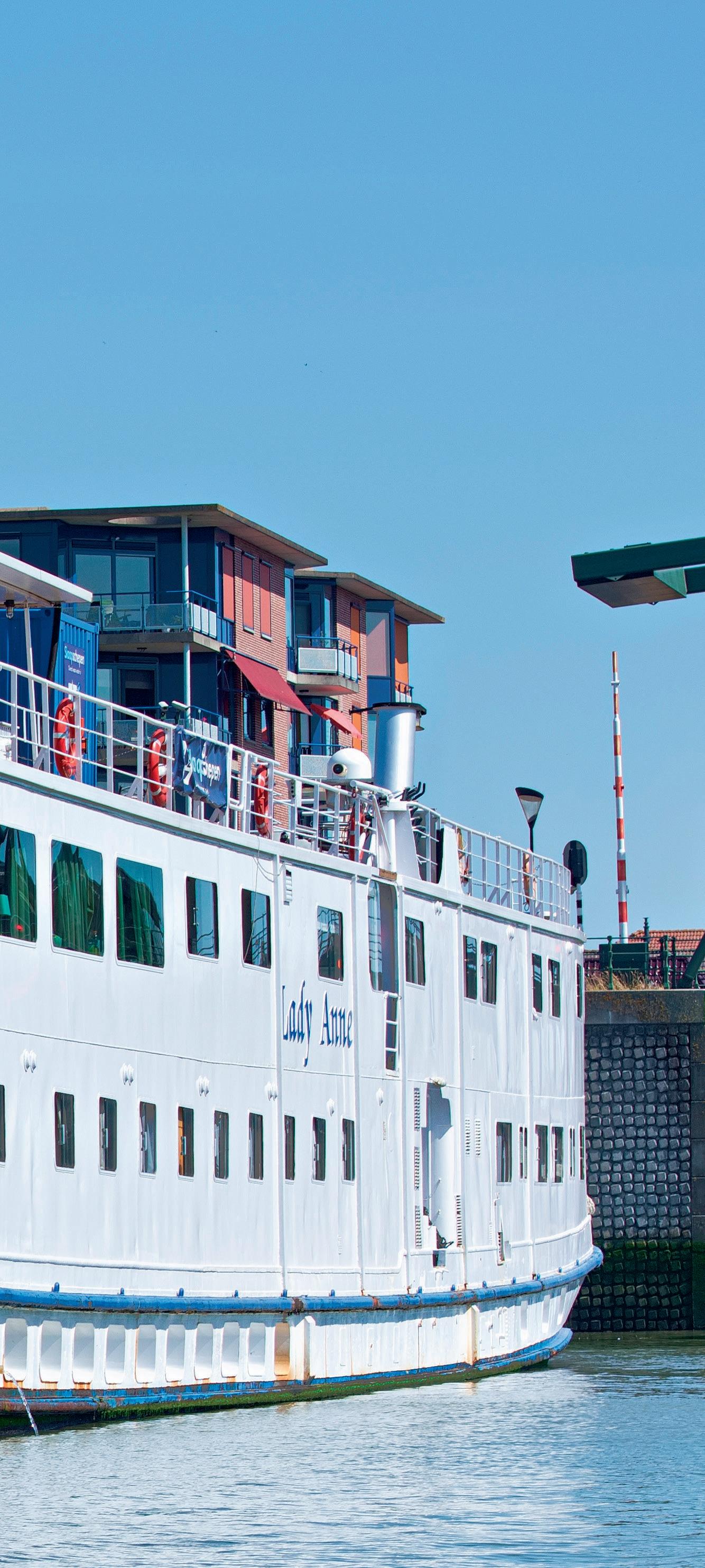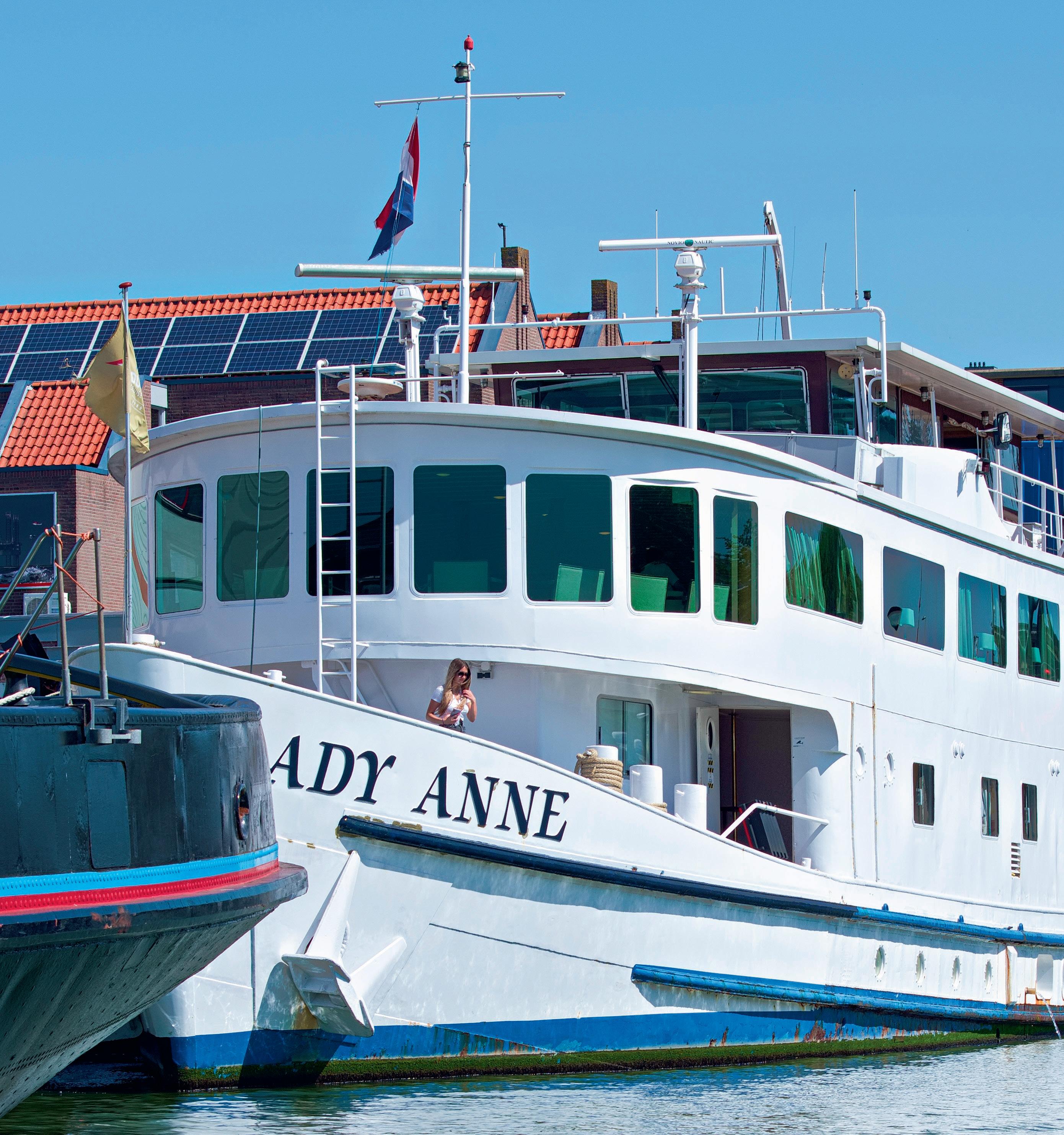 De Lady Anne heeft een prachtige historie. De boot is gebouwd als stoomvrachtschip op de werf van P. Boele Pzn in Slikkerveer voor de Nieuwe Rijnvaart Maatschappij Amsterdam N.V. en is te water gelaten onder de naam Waalwijk. In 1938 wordt de stoomboot omgebouwd tot motorvrachtschip.In1963wordthetvervolgensvoorYacht Holidays Ltd in Londen omgebouwd tot cruiseschip en wordt de boot omgedoopt tot de Lady Anne. Het blijft daarna een cruiseschip, maar draagt jarenlang de naam Avanti.Vanaf1998heethetschipweerLadyAnne.Tussen 1963en2022verwisselthetschipmaarliefstachtkeervan eigenaar. De laatste in die lange rij is Dutch River Cruises B.V.inMaasbracht,zovermeldtdewebsitevanDeBinnenvaart. Zij gebruiken de boot niet voor hun Dutch Cruise Line,maarverhurendezealsslaapschipofhotelschip. En in die toepassing fungeert het in de gemeente Maassluis sinds 1 april 2025 – opnieuw, want de boot lag er al eerder in die functie – als opvangschip voor vluchtelingen. De stad werkt nauw samen met het Centraal Orgaan opvang asielzoekers (COA) en is actief op dat gebied. Er zijn tweebotenbeschikbaarvoordenoodopvangvanasielzoekers en daarnaast huisvest de gemeente Oekraïners in 25 flexwoningen en bij particulieren. Op de schepen passen zo’n 140 vluchtelingen. Met instemming van de gemeenteraad mogen de opvangboten er in ieder geval nog vijf jaar liggen.MetmeerstedenalsMaassluishaddenwemetveel mindergedoeoverdeSpreidingswettoegekund.