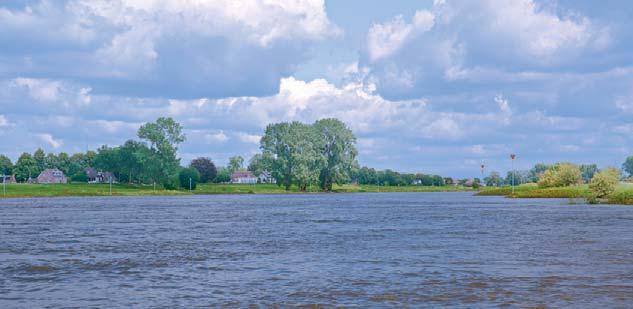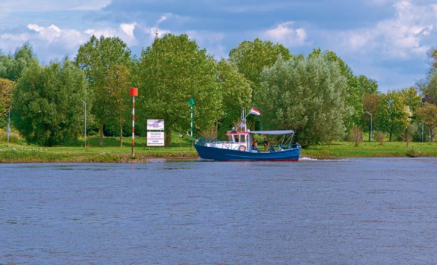 Als we de bebouwing verlaten slingert de IJssel zich weer enthousiast door het landschap. Op de uiterwaarden loopt een koppeltje roodbonte koeien te grazen, het is bijna een idyllisch tafereel. We worden opgelopen door een RIB van de politie, iets wat je toch steeds minder vaak overkomt. De agenten zijn vrolijk of gewoon vriendelijk, want ze zwaaien ons enthousiast toe. Het uiterwaardengebied aan stuurboord is onderdeel van het natuurgebied de Duursche Waarden. Met een drijvende brug en een uitkijktoren oefent het gebied grote aantrekkingskracht uit op wandelaars. De
