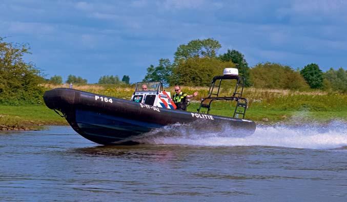 We besluiten er maar voorbijvarend van te genieten. Even later komen de agenten die ons eerder zijn opgelopen ons met de RIB tegen de stroming in weer tegemoet gerost. Omdat we elkaar al eerder gezien hebben zijn we inmiddels natuurlijk goeie bekenden en is de begroeting allerhartelijkst. ‘De politie is je vriend’ in de praktijk, zeg maar.