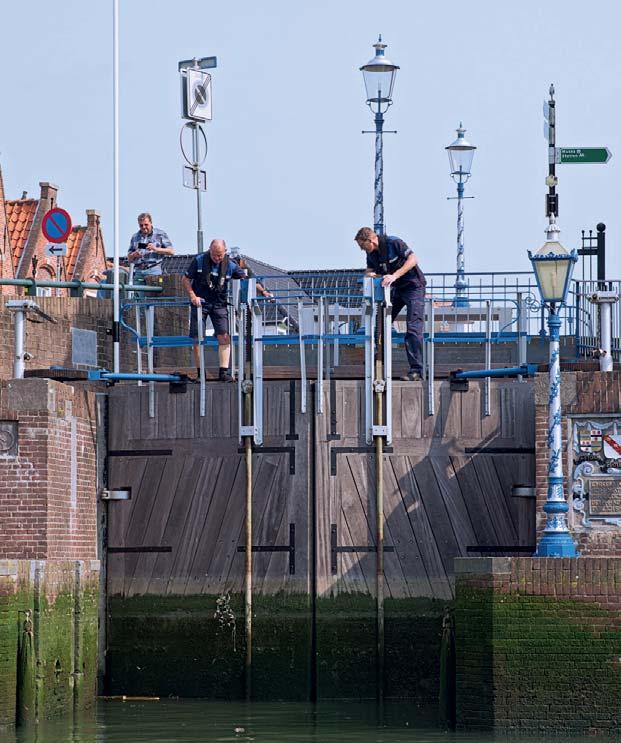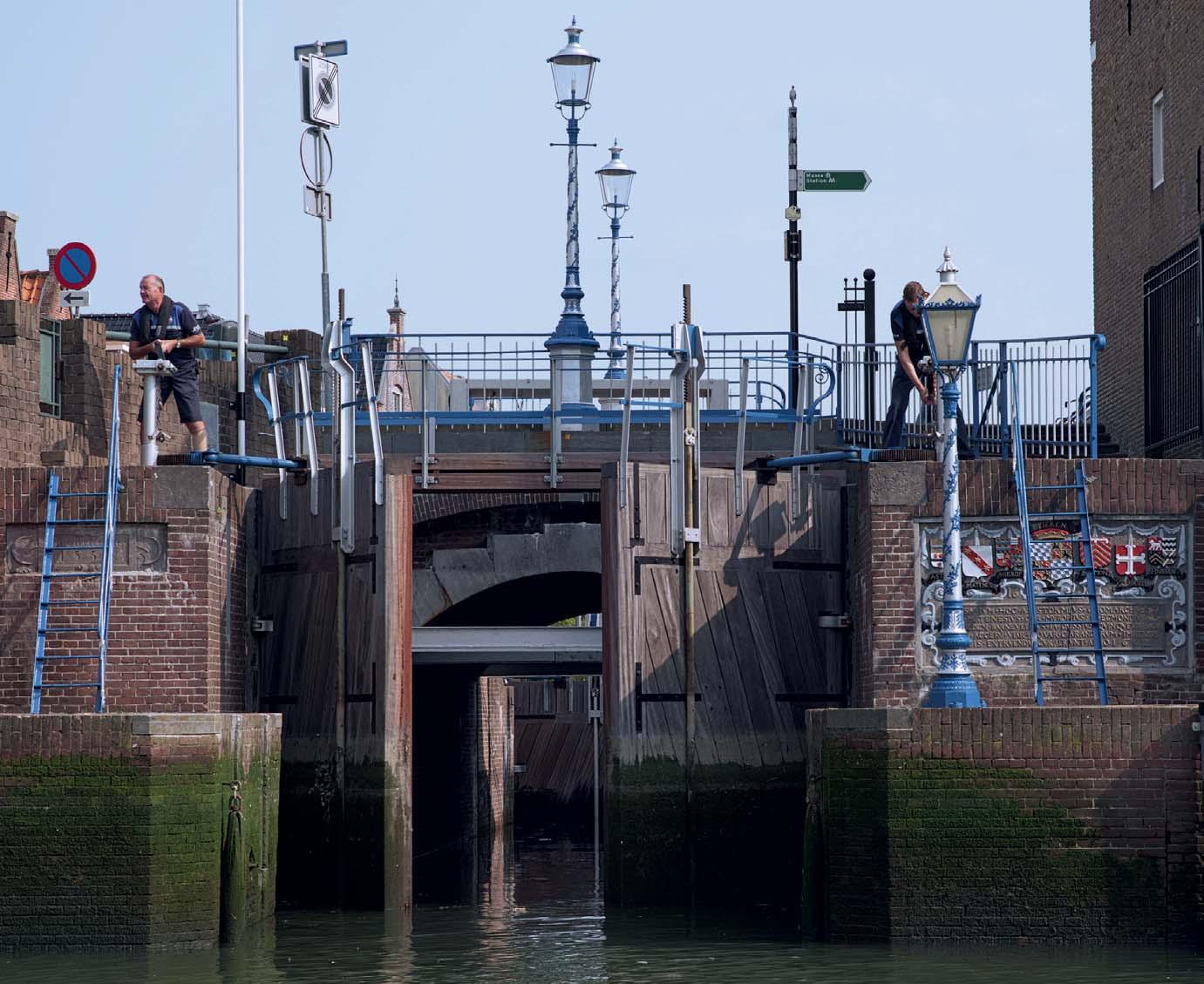 niet heel erg gemist want het laagwater aan de kant van de haven is maar kort lager dan de waterstand aan de binnenzijde. Bij hoogwater moet je mogelijk rekening houden met de hoogte van de brug die over de sluis ligt. De schuttijden staan op de website van de sluis en daarbij staat aangegeven met welke brughoogte je dan moet rekenen. Kwestie van goed plannen dus.