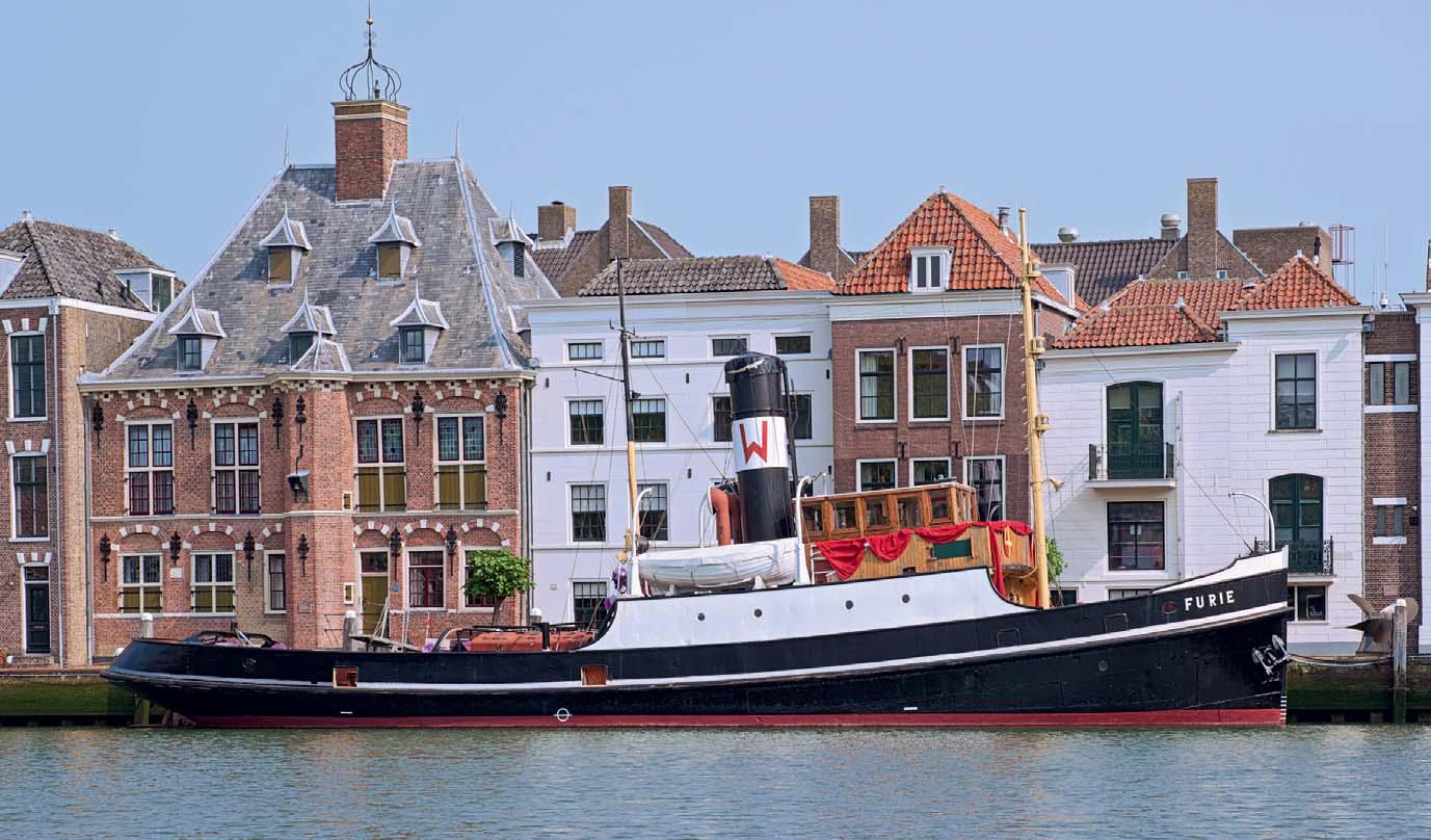 naamgever van de Furie-ade, het grote jaarlijkse feest van de plaats. Ze ligt afgemeerd aan de Stadhuiskade, die eeuwenlang het visitekaartje van de stad is geweest. De Furie ligt bij het oogstrelende 17e-eeuwse Gemeenlandshuis. Op de hoek van de kade staat nog zo’n prachtig gebouw: het is het oude 17e-eeuwse stadhuis waarin nu het Nationaal Sleepvaart Museum is gevestigd. Vanuit alle hoeken hou je hier steeds zicht op de Groote Kerk, ook al daterend uit de 17e eeuw. Je kunt daar zelfs een rondje om heen varen. Een wandeling hier is dan ook
