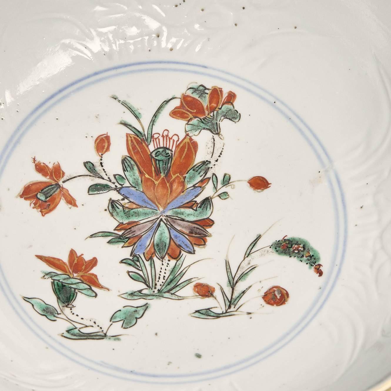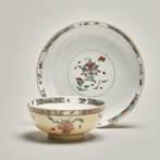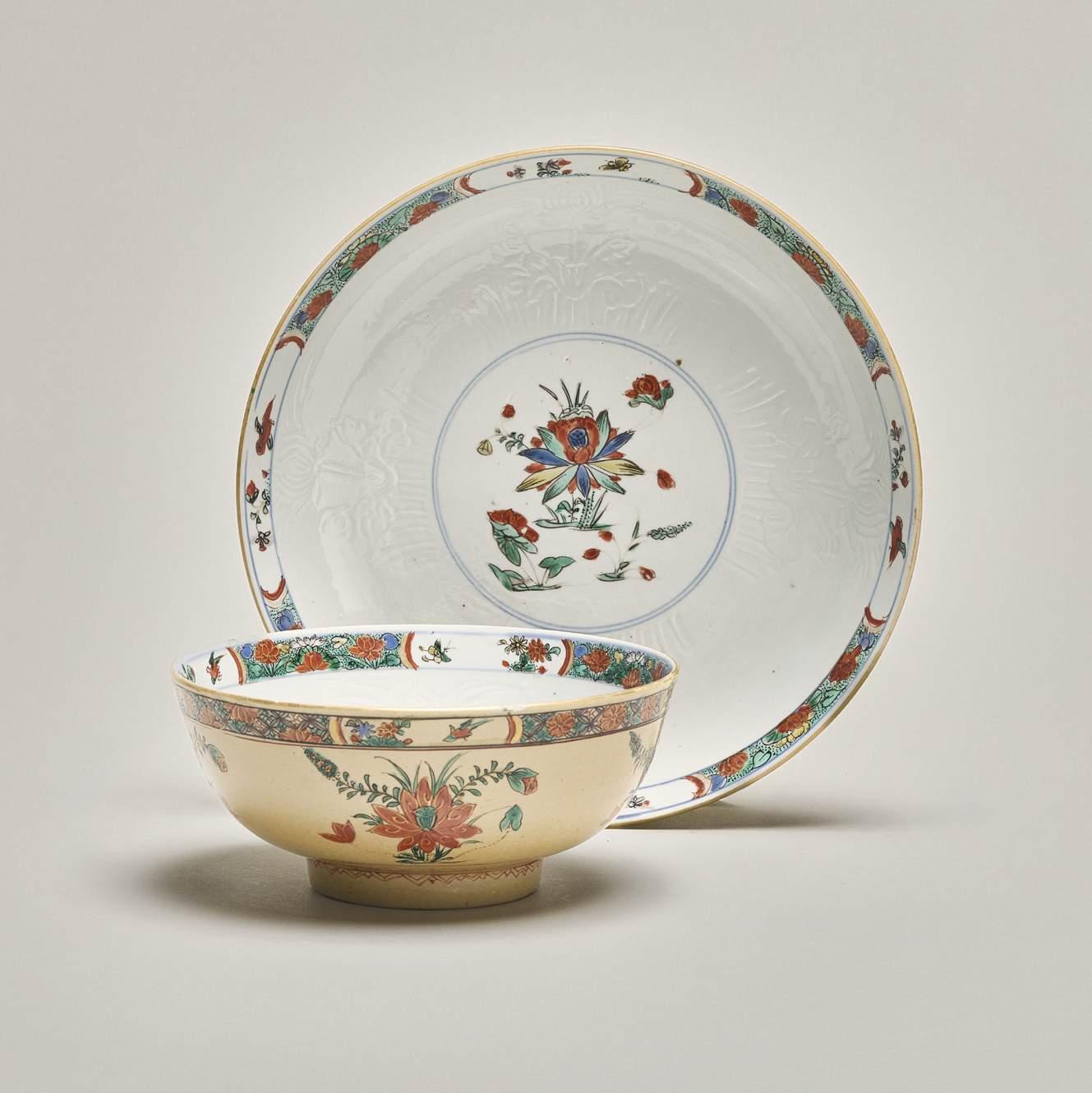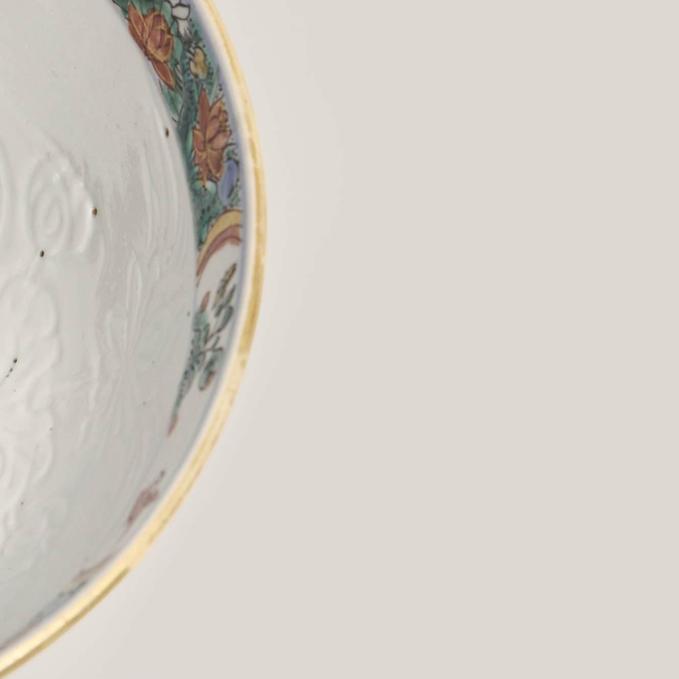Western shapes in verte are not rare. We know, for instance, salts, funnels, beer mugs, helmet-ewers and even monteiths. It is enigmatic, however that European-style decorations are absent, with the exception of some armorial designs that were made to order for Western clients, in particular the dishes and shaving bowls with the coat-of-arms of Dutch and Flemish provinces and cities. Why no other commande decorations were ordered and painted is still subject to research.