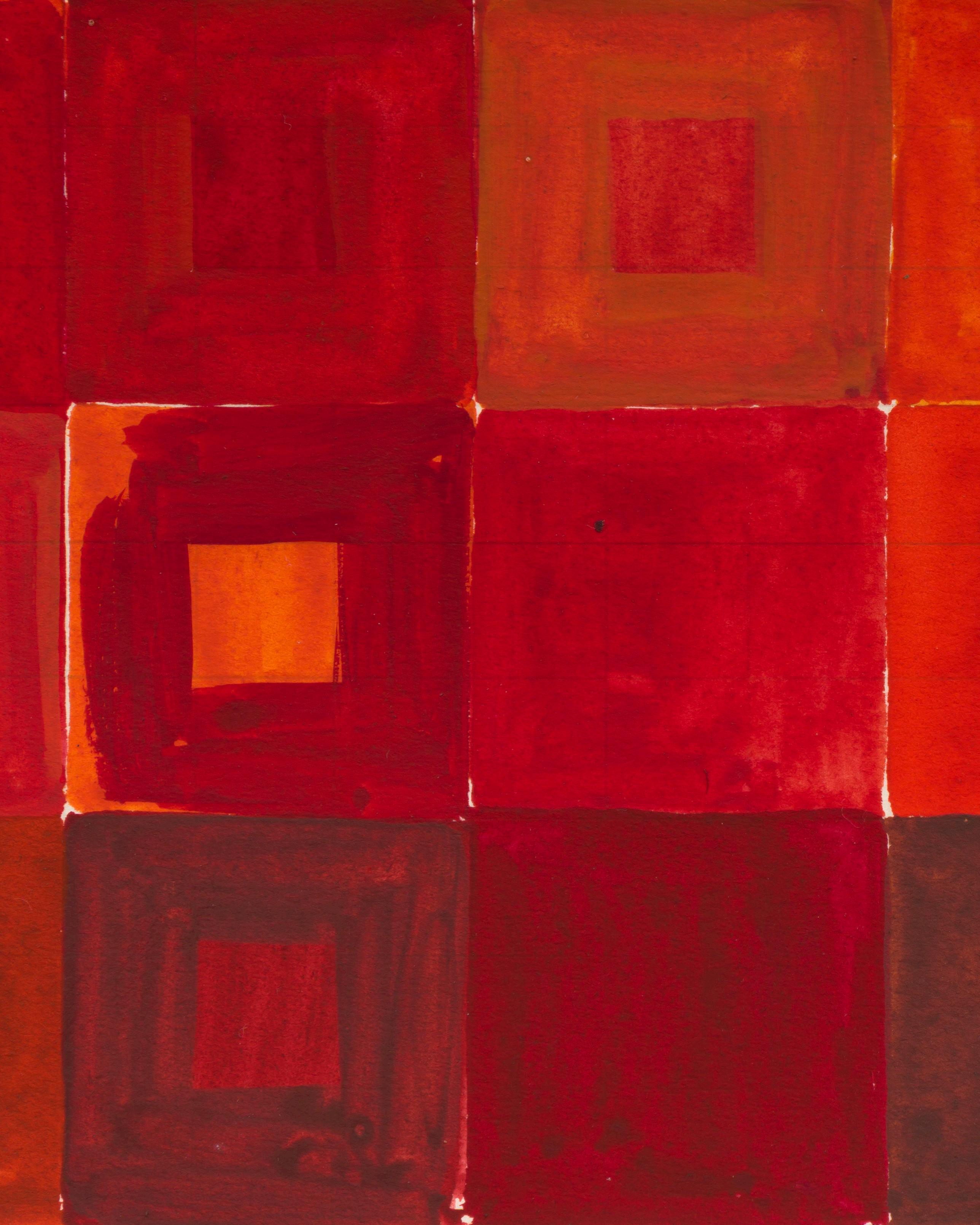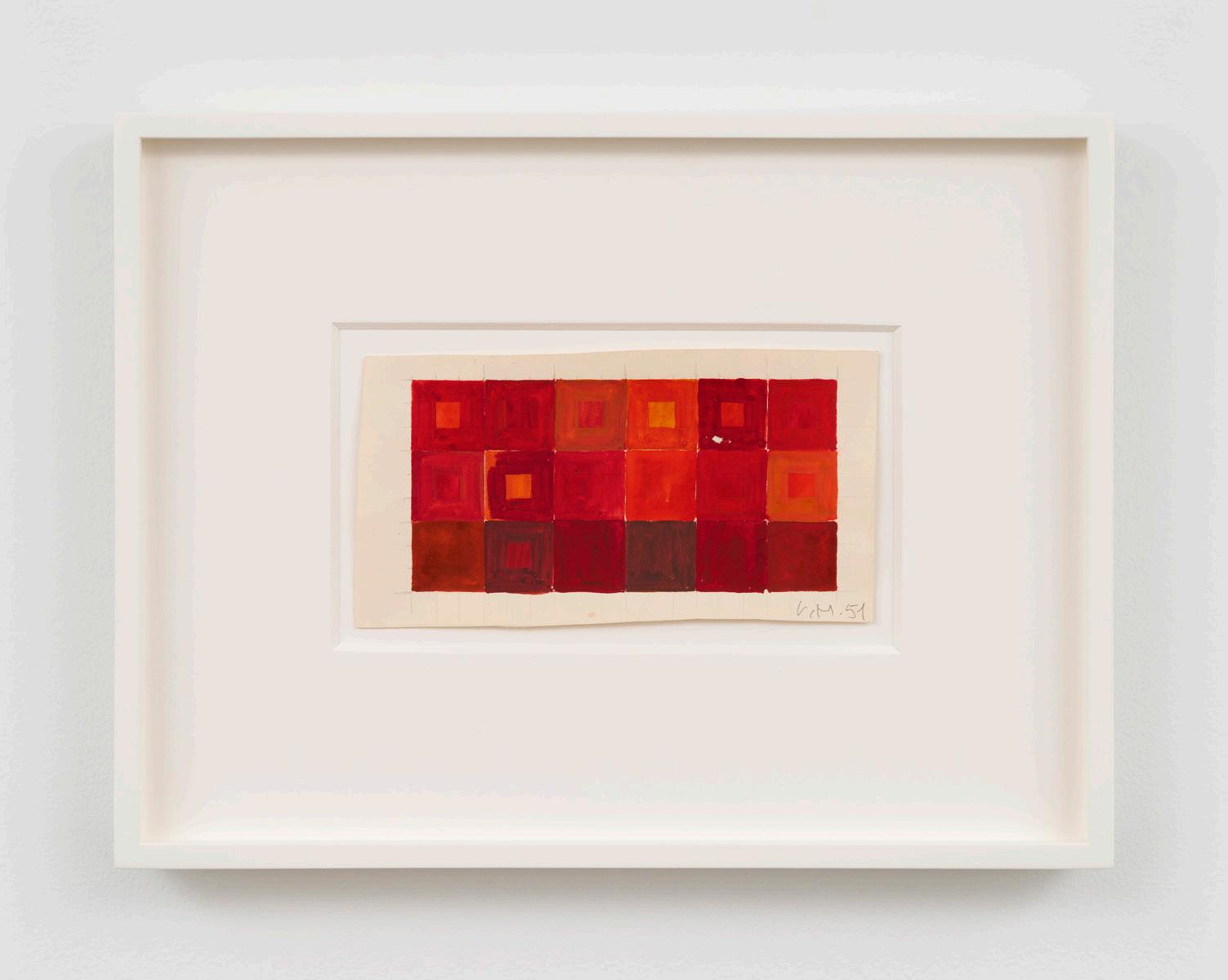 Molnar’s move toward pure abstraction was stimulated by the debates raging in postwar Paris around abstract art. While in the United States the dominance of Abstract Expressionism had rendered other movements irrelevant, geometric abstraction still played a major role in the French avantgarde, in opposition to “lyrical abstraction.” Geometric art had its own annual Salon (“Les Réalités Nouvelles”) and was supported by prominent galleries, notably Denise René, whose stable was led by Molnar’s friend and compatriot, Victor Vasarely. Among the various geometric tendencies—many of which derived from prewar movements such as Constructivism and Neoplasticism—the most original (and the one that would eventually have the greatest influence internationally) was Concrete Art, which appealed to Molnar for its emphasis on science. Launched in 1930 by Theo van Doesburg (who had earlier founded the De Stijl group with Piet Mondrian), it was promoted in the 1940s by the Swiss artist Max Bill, a close friend of the Molnars and the author of a 1949 influential essay on