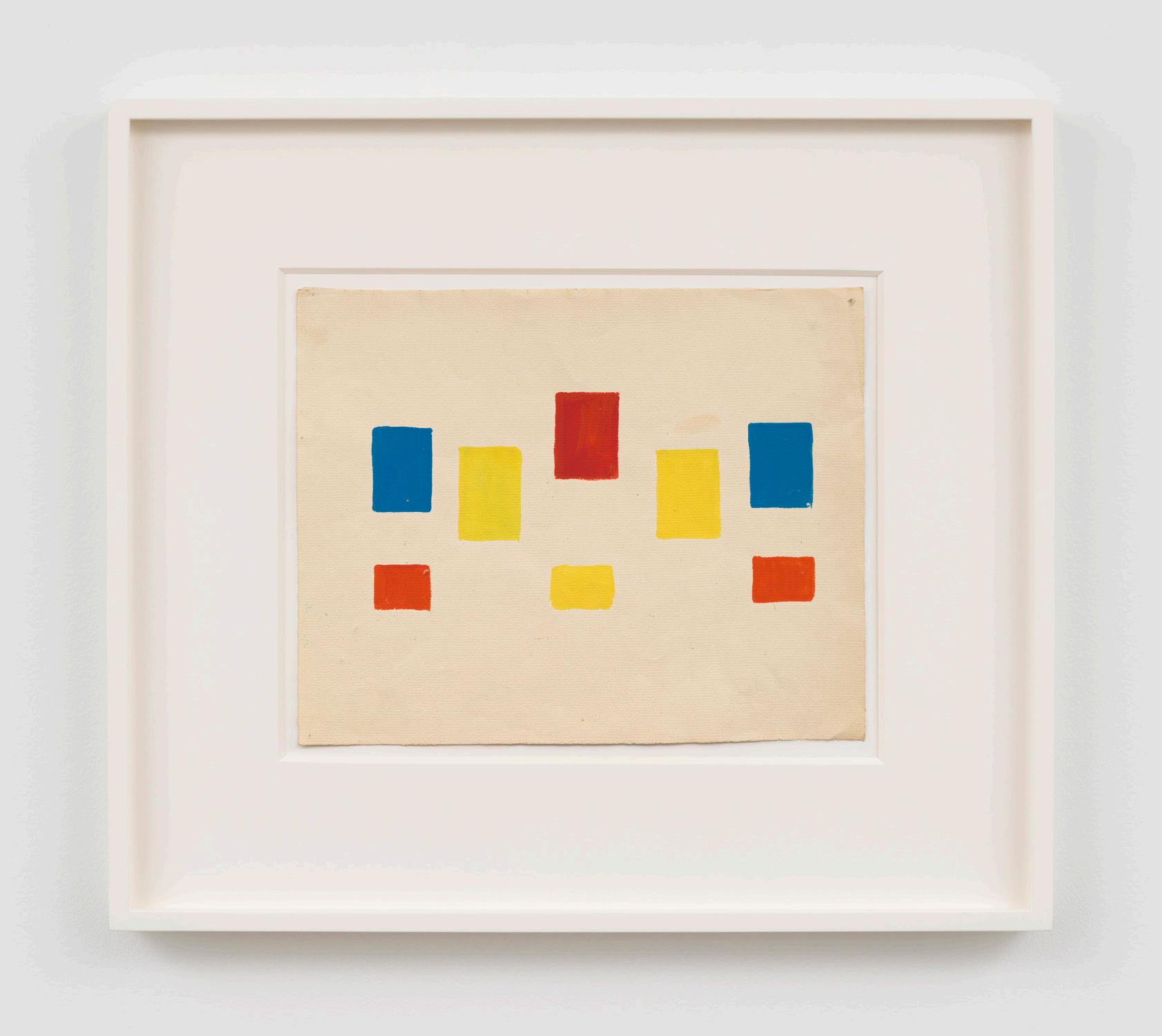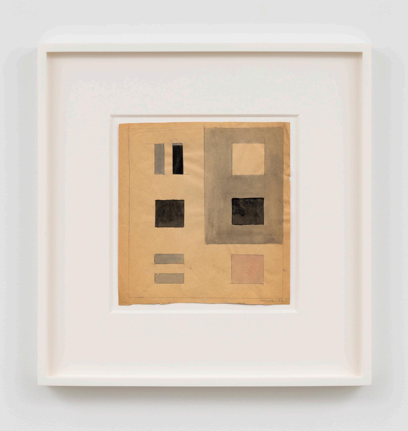 the role of mathematics in art. As she sought to downplay the artist’s subjectivity, Vera Molnar was drawn to the systematic and modular approach of Concrete Art. Her drawings and collages from the 1950s (pgs. 15, 16, 17, 18, 20) present combinations of squares, rectangles, and circles arranged according to predetermined sequences. A possible source of inspiration for these drawings can be found in the work of Sophie Taeuber-Arp, who was associated with the Concrete Art movement, and whose 1930s paintings featured similar rows and stacks of basic geometric shapes. Although Molnar never met Taeuber-Arp, who died in 1943, she knew Hans Arp, who, in 1948, published a catalogue raisonné of Taeuber-Arp’s oeuvre.