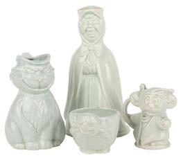 A 1930s Three Little Pigs Bisque Toothbrush Holder.