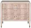 Bleached Flat Cut Mahogany Veneers and Solids, Six Drawers, Lacquered Natural Brass Hardware and Ferrules. C. BROOKLYN CHAIR V916-CH (W 25 D 35 H 33) Fabric: Vinny Oat. Metal Frame in standard Faux Bois Luxe Finish (metal finish options available with upcharge) . Shown with one extra MP144 pillow in Oliver Dusk (additional charge)