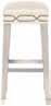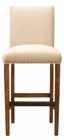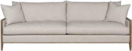 A. CREW EXTENDED SOFA 664-2ES (American Bungalow) (W 110 D 41 H 34) Fabric: Jimmy Pumice; two standard 21" throw pillows in Clarke Linen. Shown with one extra MPSP22 pillow in Cecilia Sand (additional charge) B. VERGE END TABLE P845L-LD (Stocked) (W 30 D 20 H 25) Finish: Almond. Crazy-cut Mahogany and Bleached Flat Cut Mahogany Veneers and Solids, One Glass Shelf. C. VIRTUOSO CHAIR V1229-CH. (W 23 D 33.5 H 29.5) Fabric: Tork Linen. Finish: Arles. Exposed Wood Base.
