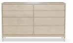 A. RENDITION NIGHTSTANDS 8401N2-OC (Stocked) (2 shown) (W 34 D 19.75 H 30) Finish: Mocha. Bleached Flat Cut Mahogany Veneers and Solids, Three Drawers, Lacquered Natural Brass Hardware and Ferrules. B. RENDITION KING BED V1761KHF (W 83 D 87.5 H 68.5) Fabric: Truvy Driftwood. Finish: Mocha. Bleached Solid Mahogany Frame, Upholstered Headboard, Footboard and Side Rails. C. RENDITION NIGHTSTAND 8401N1-OC (Stocked) (W 26 D 19.75 H 30) Finish: Mocha. Bleached Flat Cut Mahogany Veneers and Solids, Three Drawers, Lacquered Natural Brass Hardware and Ferrules. D. RENDITION DRESSER 8401D-OC (Stocked) (W 68 D 20.75 H 35) Finish: Mocha. Bleached Flat Cut Mahogany Veneers and Solids, Six Drawers, Lacquered Natural Brass Hardware and Ferrules.
