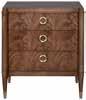 A. RENDITION KING BED 8402K-OC (Stocked) (W 80.5 D 84 H 68) Finish: Mocha. Bleached Crotch Mahogany Headboard with Radial Match Veneer Pattern, Bleached Crotch Mahogany Footboard, Bleached Flat Cut Mahogany Frame and Side Rails. B. RENDITION NIGHTSTAND 8401N1-OC (Stocked) (W 26 D 19.75 H 30) Finish: Mocha. Bleached Flat Cut Mahogany Veneers and Solids, Three Drawers, Lacquered Natural Brass Hardware and Ferrules.