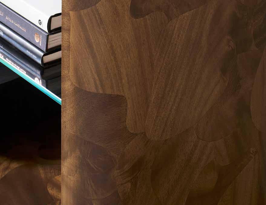Stunning from every perspective, this bold veneer is an artistic assemblage of numerous individually pieced segments. Crafted of sustainable mahogany, our exclusive crazy-cut pattern showcases this hardwood’s natural beauty and can be hand-finished in any shade.