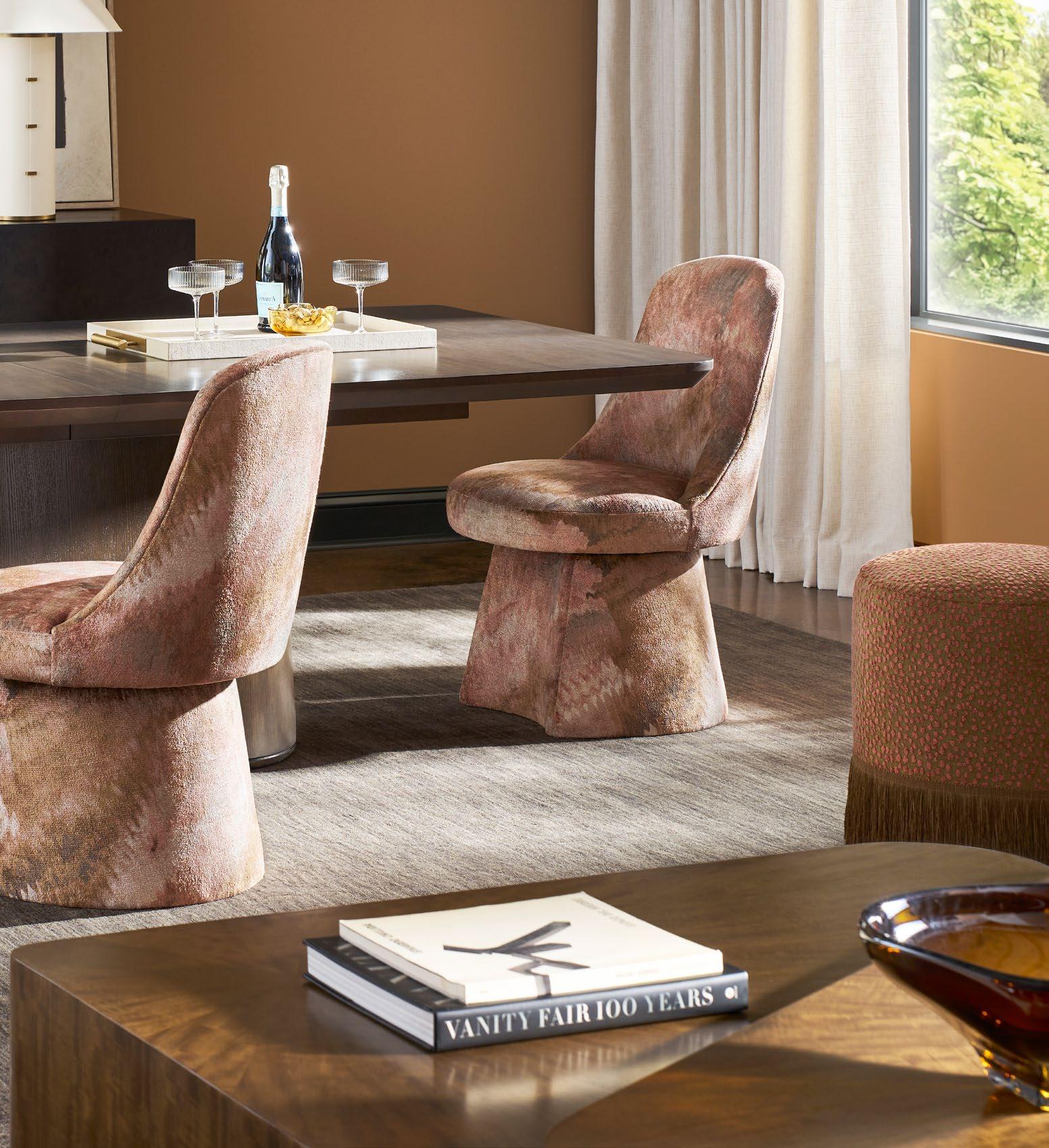While you can customize your dining table base and chairs with any fabric or trim, we love these selections for their touchable softness, intriguing texture, and trend-forward colorways.