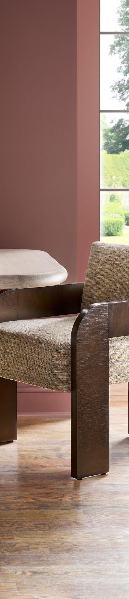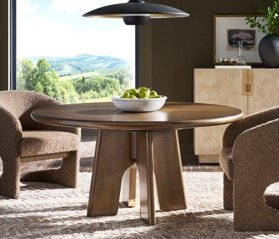 A. MARA ARM CHAIRS V180A (2 shown) (W 25 D 25.5 H 32) Fabric: Napoli Sable. Fully Upholstered. B. MAKE IT YOURS DINING PEDESTAL TABLE TF60RE04. (W 60 D 60