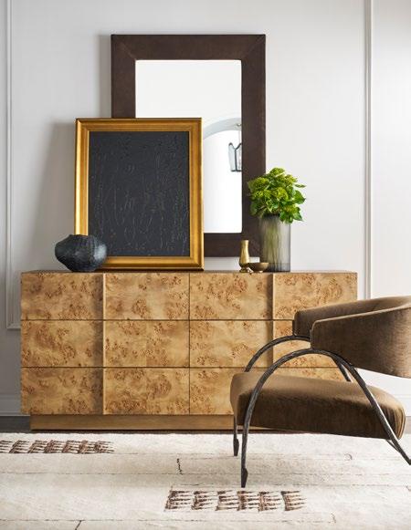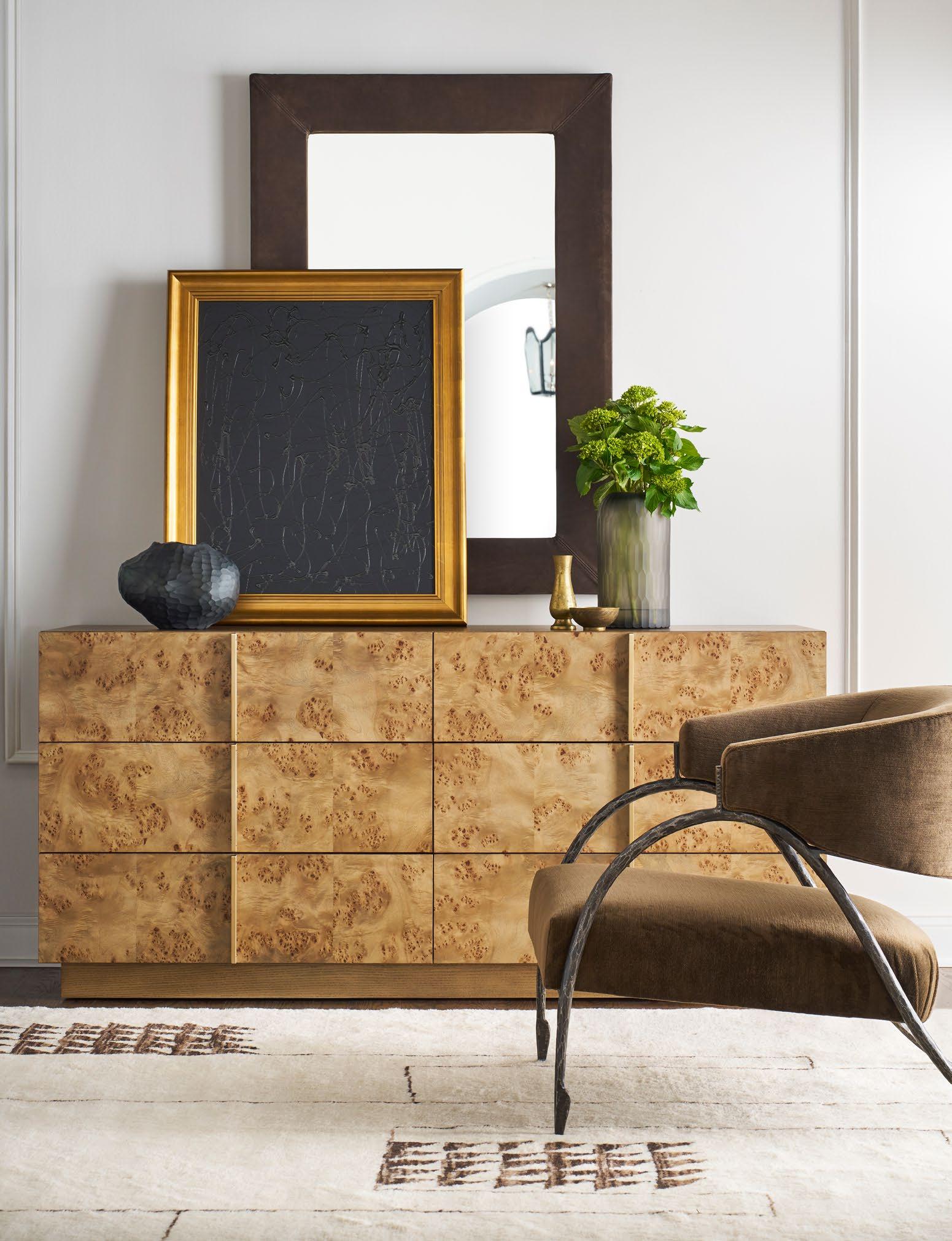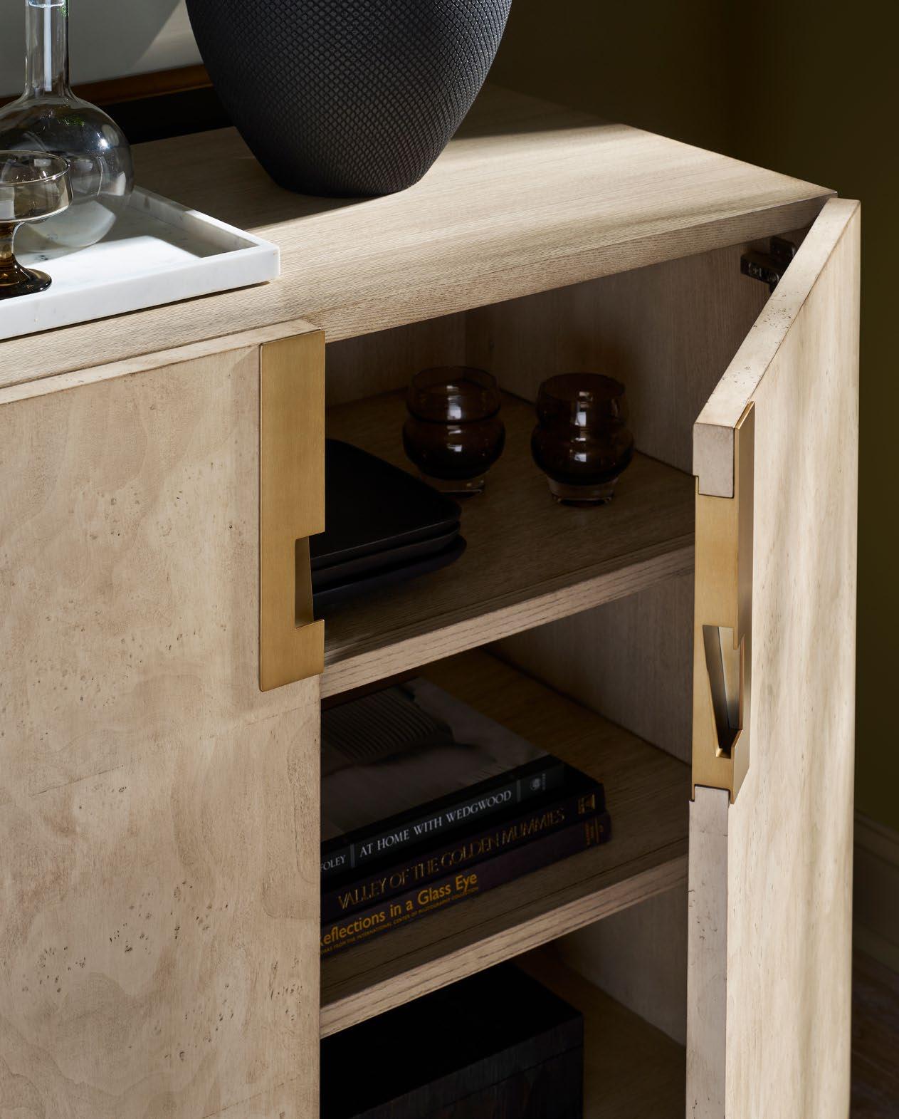 A study in refinement, Nova evokes blissful serenity. Its chic contemporary character feels bold with structured forms artfully imagined in exquisite Mappa Burl veneers. Long, linear handles finished in warm Satin Brass are integrated into the drawer fronts for a seamless effect that lets the eye focus on the iconic beauty of natural burl. Ash veneers are expertly crafted to form each case and base design and hand-finished to perfection in a multi-step process imparting just the right amount of sheen. With exquisite materiality, Nova offers a seamless expression of modern organic-inspired style.