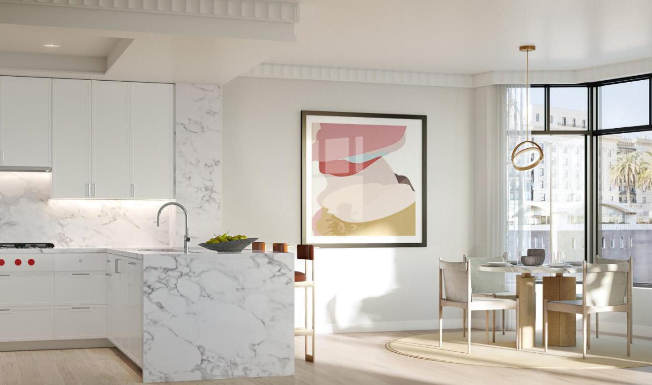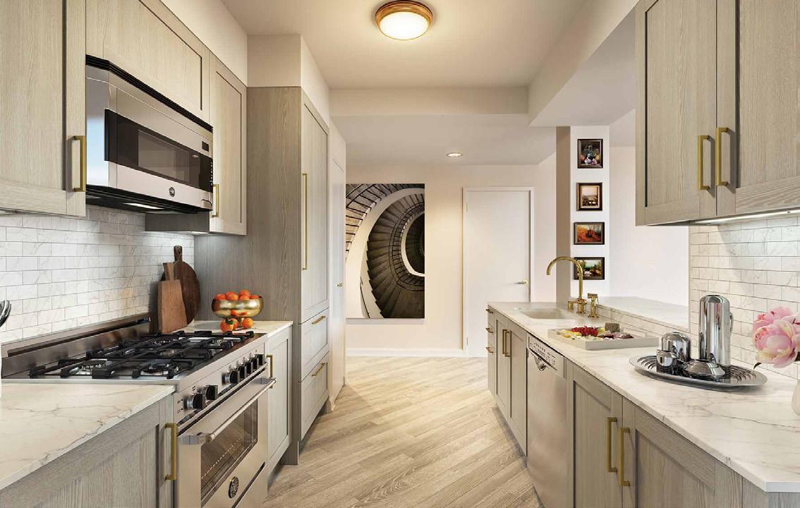 Features & Finishes: Individually-designed interiors with Bosch dishwashers, Smeg Gas ranges, Miami White quartz countertops, Grohe fixtures, white oak hardwood flooring, wool carpeting, Juliet balconies in select residences