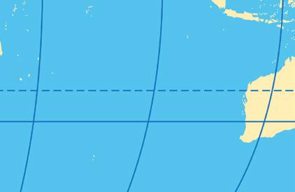 d. En imaginant une graduation entre les deux parallèles entourant la ville, estime la latitude. Exemple : La ville se situe au milieu des deux parallèles, elle est donc à 15° sud.