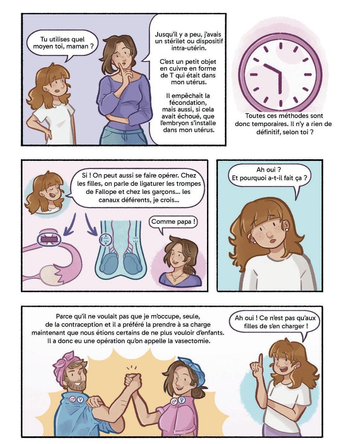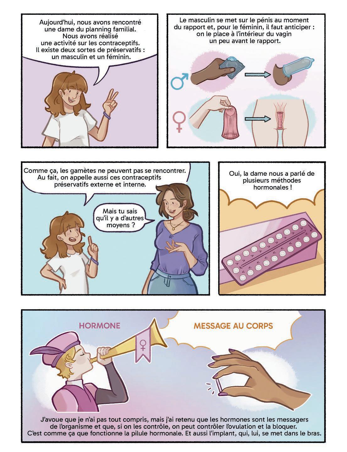 è Lis la bande dessinée et surligne les termes qui font référence à des moyens contraceptifs.