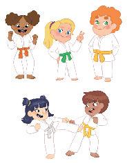 4. Colorie en vert la ceinture la plus longue et en bleu la moins longue. Ensuite, numérote dans l’ordre de la moins longue à la plus longue.