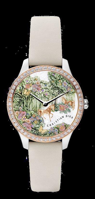 Charles Lewis Tiffany recognised the demand for finely-made, highprecision timepieces in 1847, debuting the Tiffany & Co Timing Watch in 1866 –one of the first American pocket watches – designed for use in science and sporting events. To celebrate 160 years since its creation, the high jewellery brand has reinvented the Tiffany Timer (left) in a limited-edition of 60 pieces, which debuted at the LVMH Watch Week in Milan in January. The new watch comes in a platinum case equipped with a customised El Primero 400 movement featuring the maison’s Bird on a Rock design. The dial is in Tiffany blue lacquer and set with 12 baguette-cut diamond indexes and completed with a taupe alligator strap and triple folding clasp in 18k white gold. American history on the wrist.