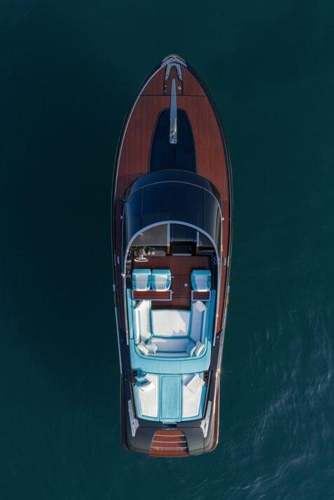 Get ship shape with the limitededition Riva Cento open yacht (right). Produced in only 12 units and debuted at the Cannes Yacht Festival in autumn 2025, this magnificent open yacht for collectors enhances the brand’s classic, elegant character with new stylistic and functional details. The distinctive stern area is fitted with an electro-hydraulic system that opens the stern door, revealing mahogany steps under which there are two chaises longues with detachable cushions that create two comfy sunbeds, transforming this space into a splendid beach area. The yacht’s cockpit is fitted with a C-shaped sofa that frames a stainless-steel table. Below deck, there is a generous open space designed to offer ultimate comfort when cruising and for overnight stops at anchor. »