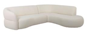 Fraai afgewerkte hoekbank (let eens op de fraaie rondingen) bekleed met stof Teddy beige. Snel leverbaar!