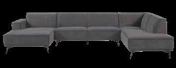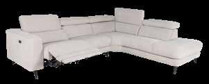Perfecte hoekbank bekleed in trendy stof Chile frost en met verstelbare hoofdsteunen. Standaard uitgevoerd met elektrisch relaxelement. Afmetingen: 285 x 235 cm.