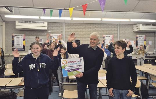 cent Rosalie Posthumus: “Sommige leerlingen hadden begin van het schooljaar nog nooit een akkoord op een muziekinstrument bespeeld, maar ze hadden veel plezier in het oefenen van kerstliedjes en ze werden steeds beter.” Samen met collega Idske Bangma, die vanuit het LeerWerkBureau op de AMS werkt, bedachten ze de ‘AMS Band on Tour’ een muzikale tour met leerlingen die vier kerstoptredens gaven bij zorgcentra Keningstate, Botniahuis en Sinnemahuys en in de kantine van de school. Bangma: “De bewenners, meiwurkers fan de soarchynstellings, âlders, dosinten en learlingen hawwe sa genoaten fan de optredens. Dit smakket nei mear foar de takomst.” Het project had een dubbel doel: niet alleen iets goed doen voor een ander en het verspreiden van vrolijke kerstmuziek bij mensen die dat konden waarderen, maar ook verbinding met de regio. En dat er dan ook nog zo’n mooi bedrag is opgehaald is voor alle partijen echt fantastisch!