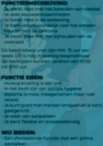 - Je bent verantwoordelijk voor het schoonhouden van de cafetaria
