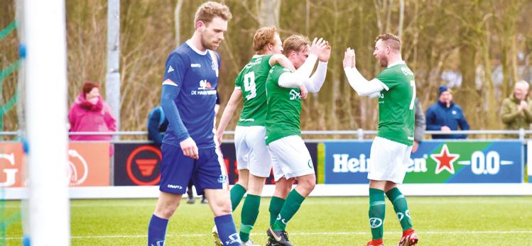 paal en kon uiteindelijk door doelman Jesse Jaasma op de doellijn worden gepakt. Nadat Sander Zeilmaker werd neergelegd wees de scheidsrechter andermaal naar de stip en het was Martijn Homminga die zijn tweede strafschop van die middag benutte. fc Harlingen begon wat meer druk te zetten op de helft van v.v. Oldeboorn, maar ook zij kwamen er een aantal keren gevaarlijk uit en onze mannen moest achterin dan ook alles op alles zetten om niet nog meer doelpunten tegen te krijgen.
