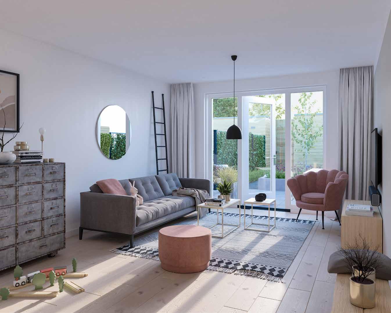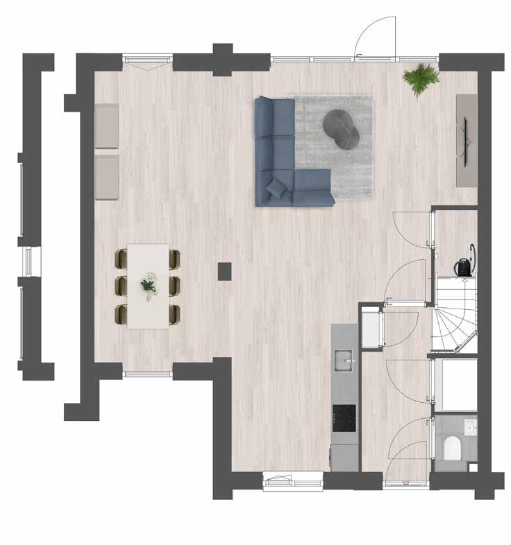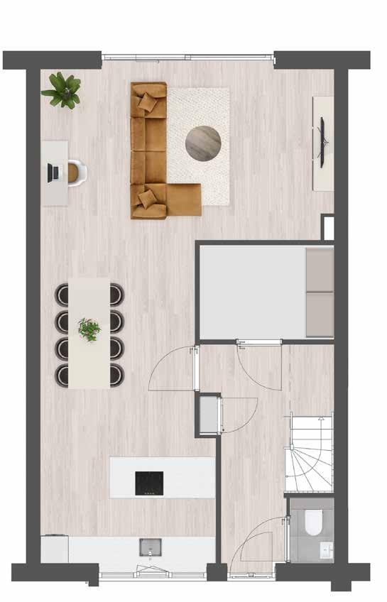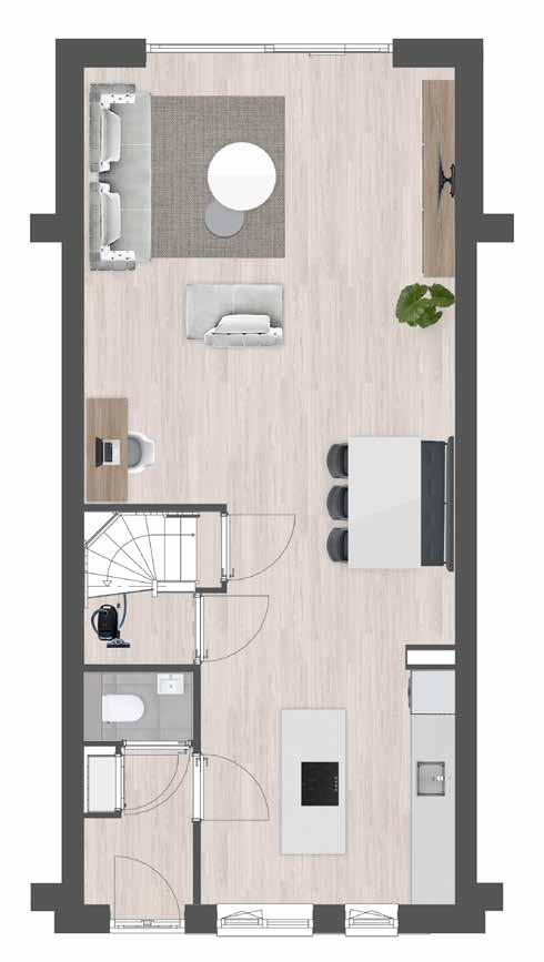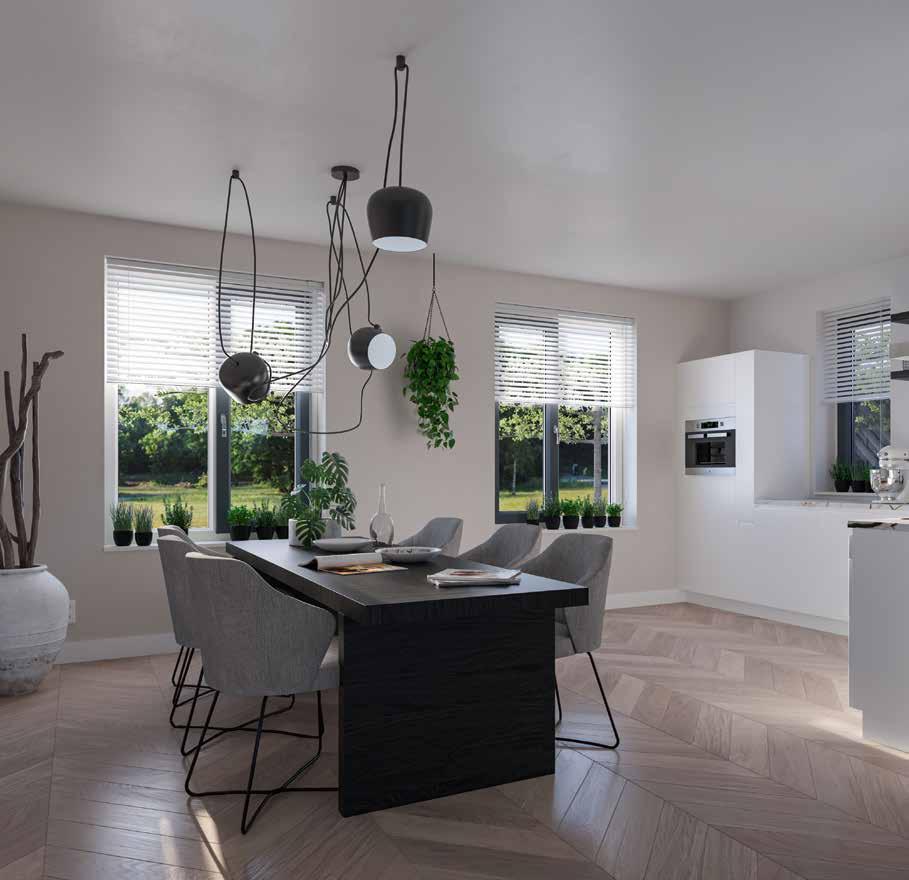 om de sfeer en de mogelijkheden van dit project te laten zien. De in dit Woon!magazine aangegeven keuken, huishoudelijke apparaten en inrichting c.q. aankleding geven een impressie van de mogelijkheden en behoren niet tot de standaard uitrusting van de woning. De juiste positie van elektra/schakelmateriaal, rookmelders, afzuigpunten t.b.v. ventilatie e.d. staan op de verkooptekeningen vermeld en zijn niet in de plattegronden opgenomen. Aan de beelden, illustraties, plattegronden en teksten in dit Woon!magazine kunnen geen rechten ontleend worden. ...dát maakt Van Wanrooij