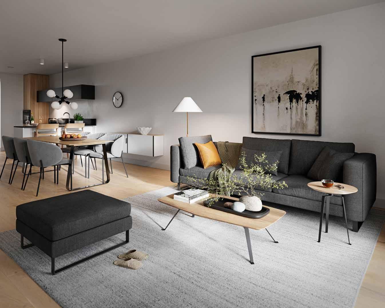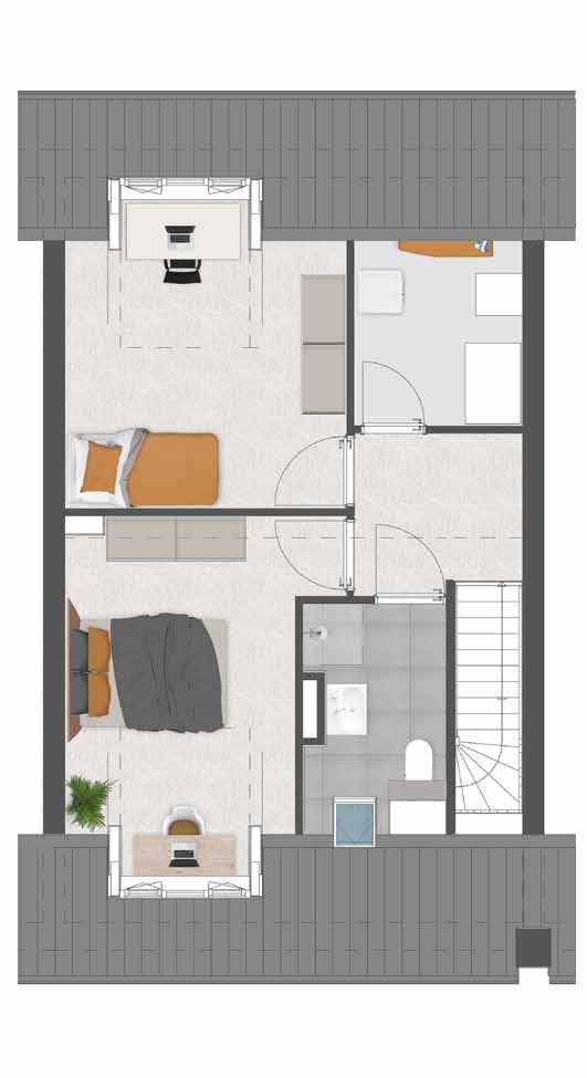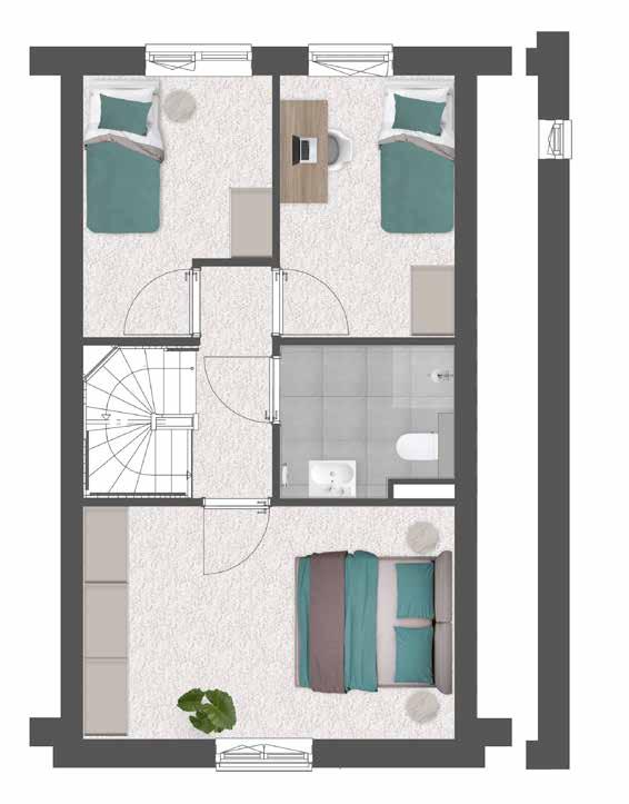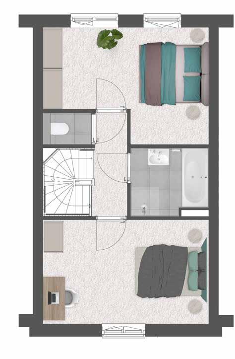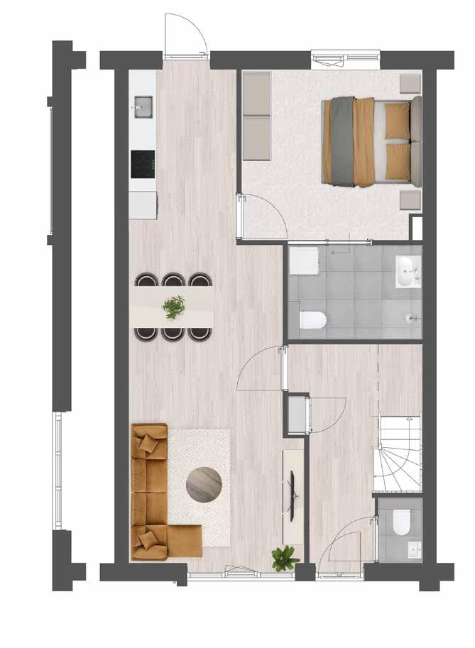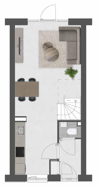 om de sfeer en de mogelijkheden van dit project te laten zien. De in dit Woon!magazine aangegeven keuken, huishoudelijke apparaten en inrichting c.q. aankleding geven een impressie van de mogelijkheden en behoren niet tot de standaard uitrusting van de woning. De juiste positie van elektra/schakelmateriaal, rookmelders, afzuigpunten t.b.v. ventilatie e.d. staan op de verkooptekeningen vermeld en zijn niet in de plattegronden opgenomen. Aan de beelden, illustraties, plattegronden en teksten in dit Woon!magazine kunnen geen rechten ontleend worden. ...dát maakt Van Wanrooij