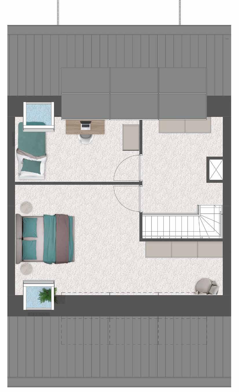 • Optional fixed staircase to the attic on the third floor for numbers 228 and 229, creating a full additional floor!