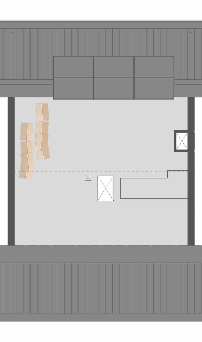1. Attic layout with landing and two rooms (at numbers 221 to 225)