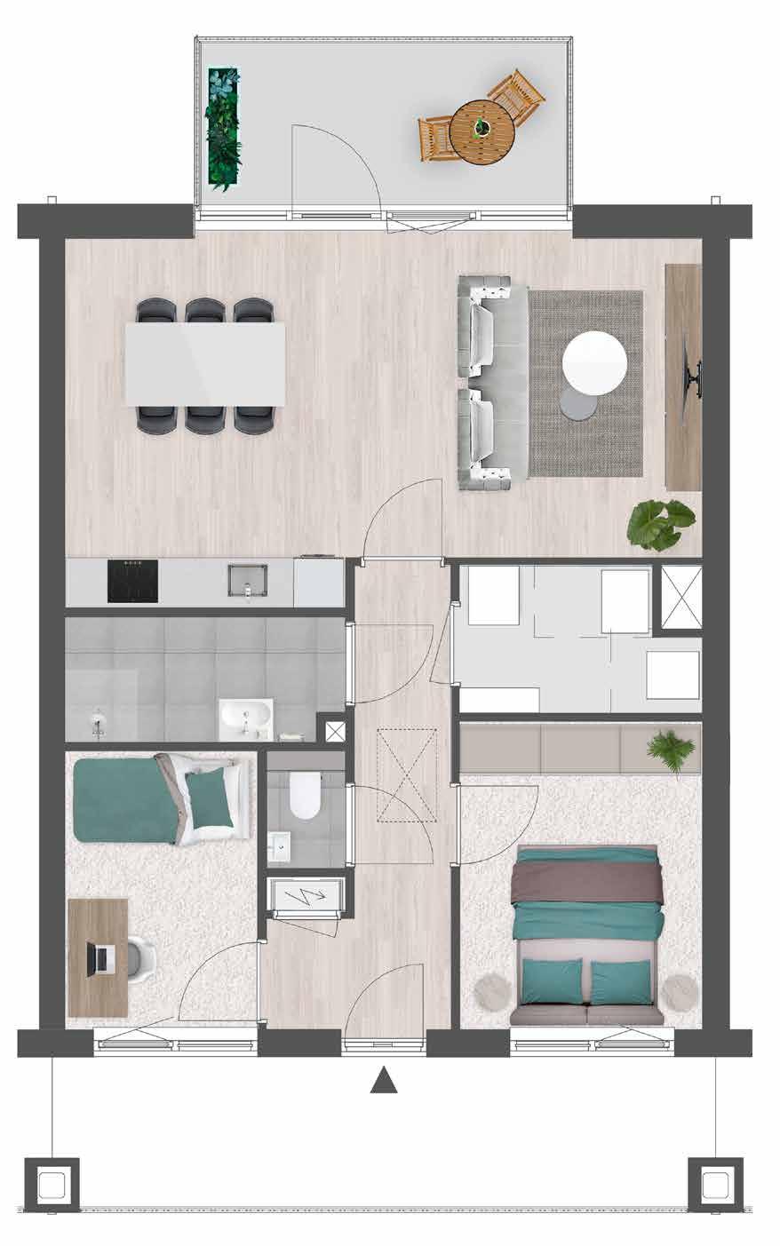 We strive to build as lean as possible. We also offer a wide variety of options so everyone can customize their apartment layout and/or finish, ensuring immediate occupancy upon completion. Our apartments are equipped with a ventilation system and hardwood window frames as standard. All our apartments meet the requirements for Nearly Zero-Energy Buildings (BENG). The apartments are designed to minimize energy consumption. The energy required is sourced as much as possible from renewable sources, such as solar panels and a ground-source heat pump.