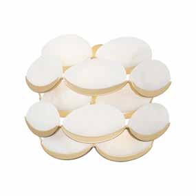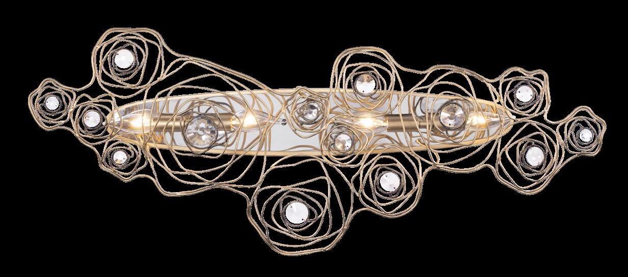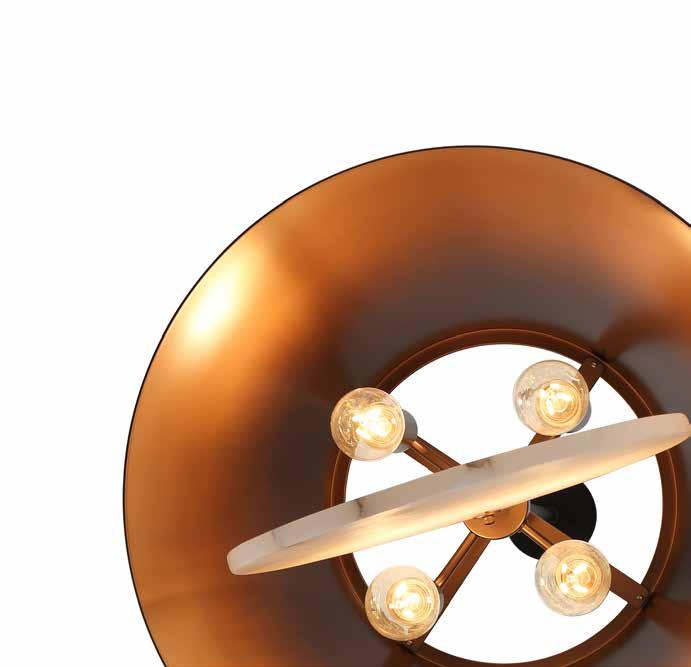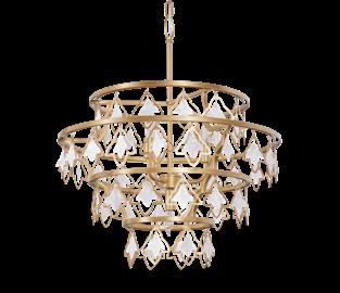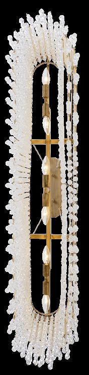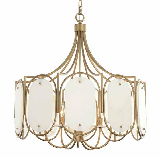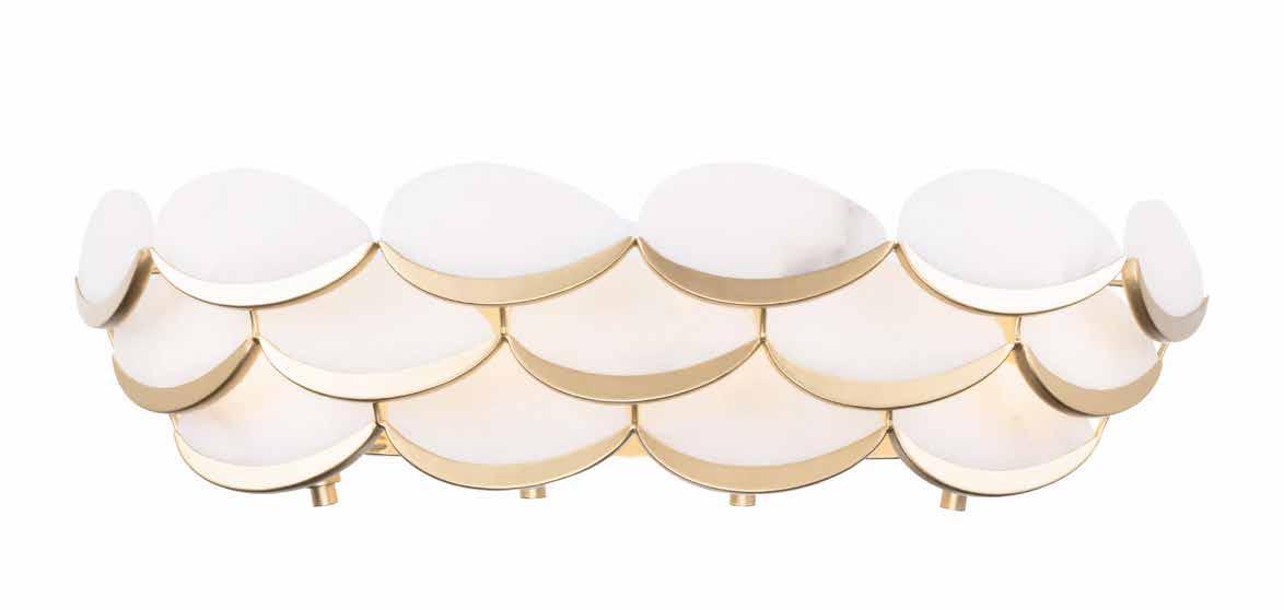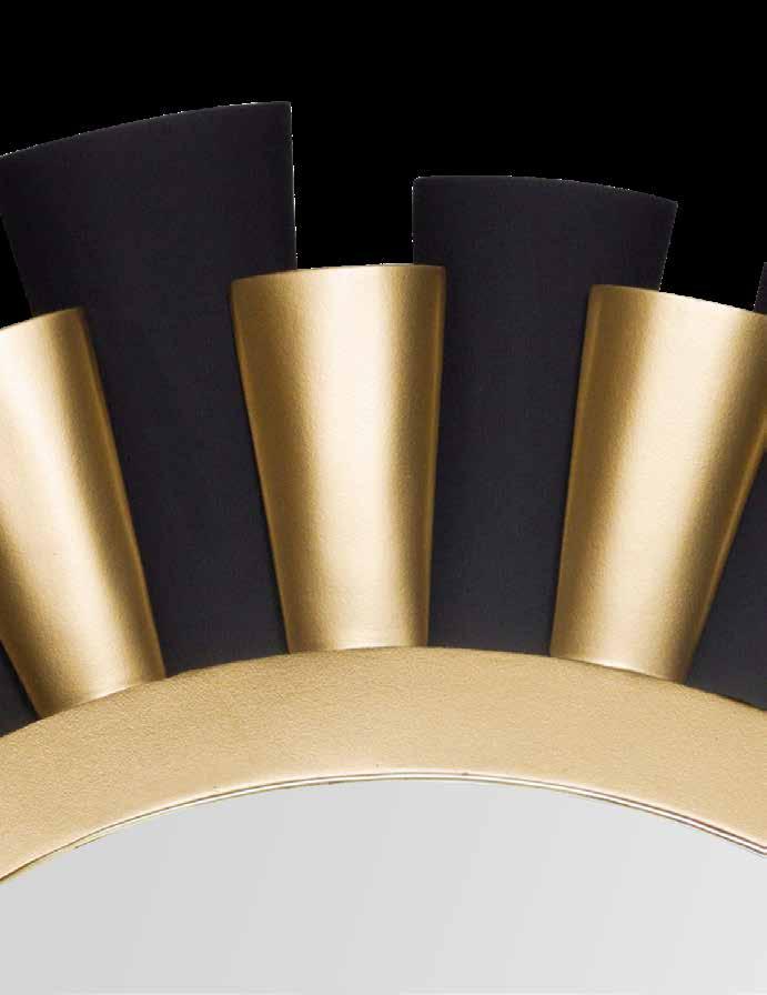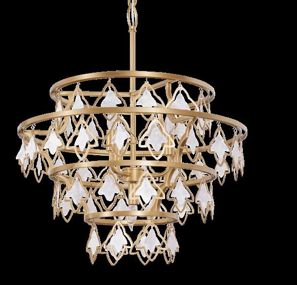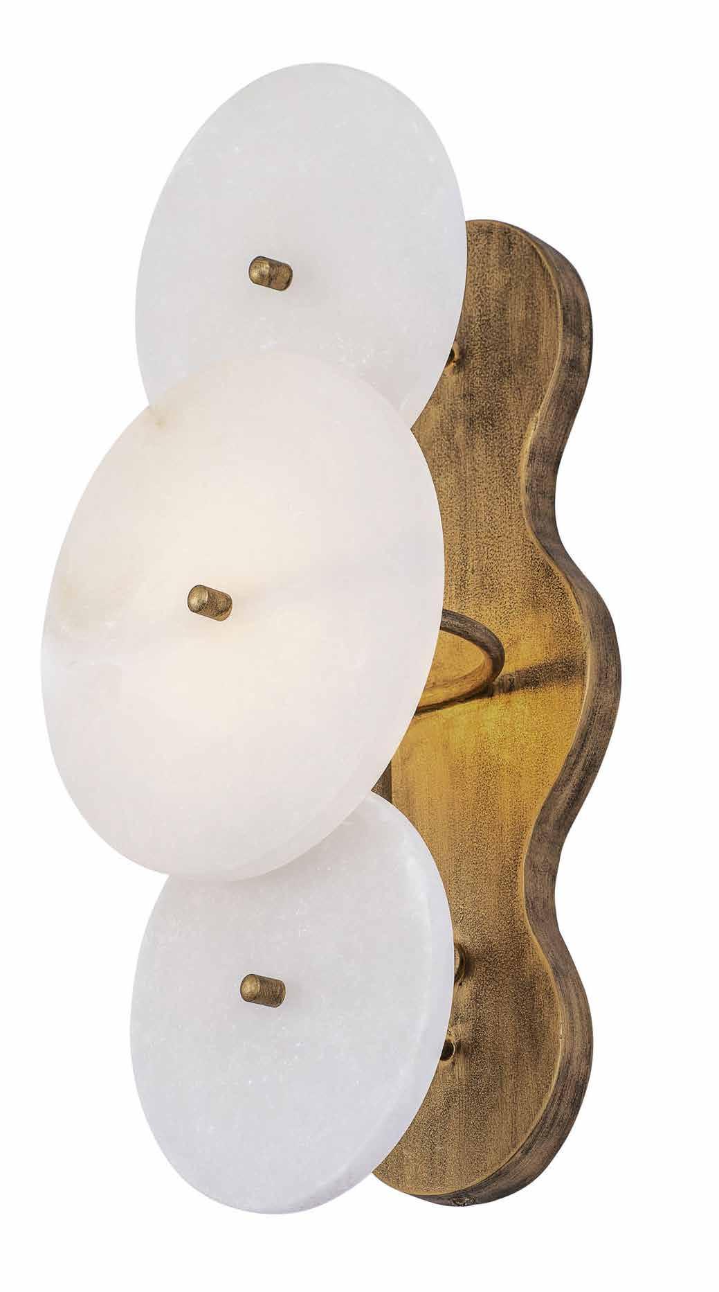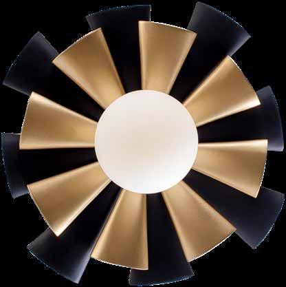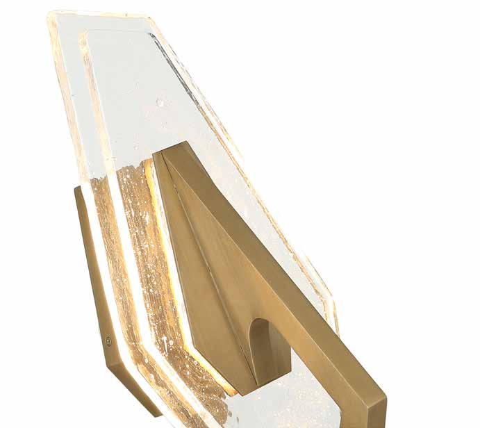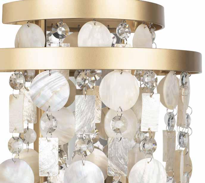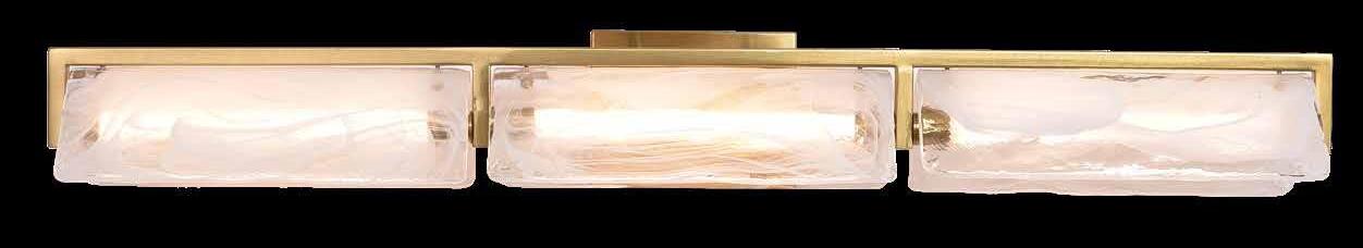 LIKE THE SHIMMERING WAVES OF DAWN THAT INSPIRED ITS NAME, AURORA BATHES EVERY ROOM IN A SOFT, GOLDEN GLOW. LAYERED OVAL GLASS DISCS—EACH TEXTURED TO CATCH AND SCATTER LIGHT—SURROUND A WARM BRASS FRAME, CREATING A RADIANT HALO OF STYLE AND SOPHISTICATION. INSPIRED BY MID-CENTURY MURANO GLASS DESIGNS, AURORA IS THE PERFECT BALANCE OF VINTAGE GLAM AND MODERN REFINEMENT.