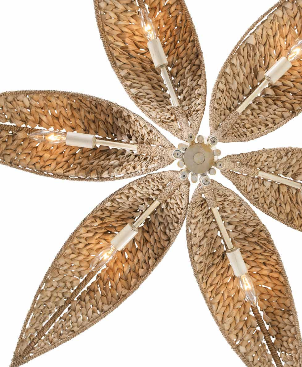 THE COLLECTION’S ICONIC LEAF SILHOUETTES COME TO LIFE THROUGH TWO EXPRESSIVE MATERIALS. THE ORIGINAL, CRAFTED FROM LOW-VOC, HAND-PAINTED RECYCLED STEEL, REMAINS A VARALUZ FAVORITE FOR ITS SCULPTURAL DIMENSION AND DURABILITY. NOW, BANANA LEAF EXPANDS ITS TROPICS-ROOTED CHARM WITH A FRESH NEW OPTION: HAND-WOVEN SUSTAINABLE SEAGRASS. THIS NATURAL MATERIAL ADDS AN AIRY, ORGANIC SOFTNESS—EACH WEAVE CAPTURING THE ARTISTRY OF TRADITIONAL CRAFTSMANSHIP AND THE TRANQUILITY OF COASTAL LIVING.