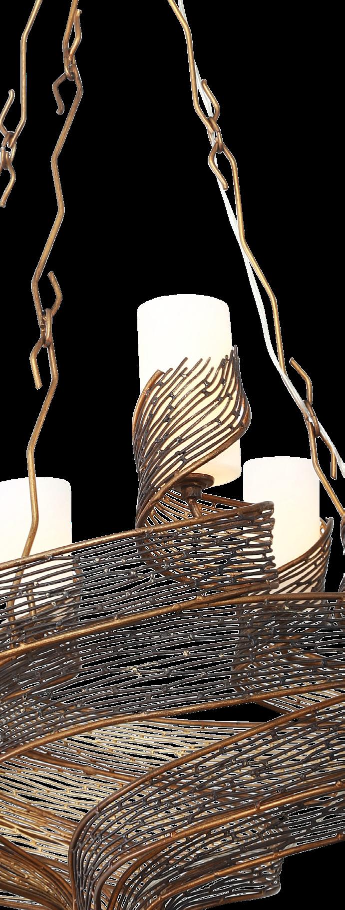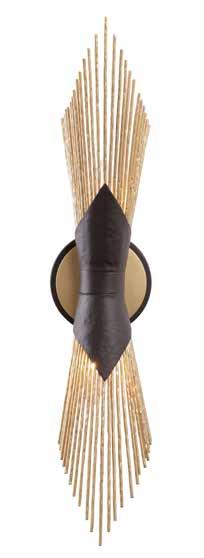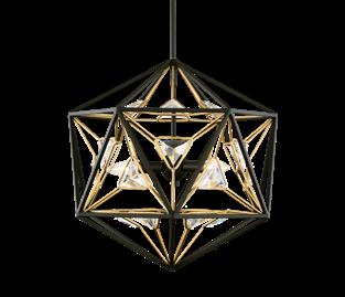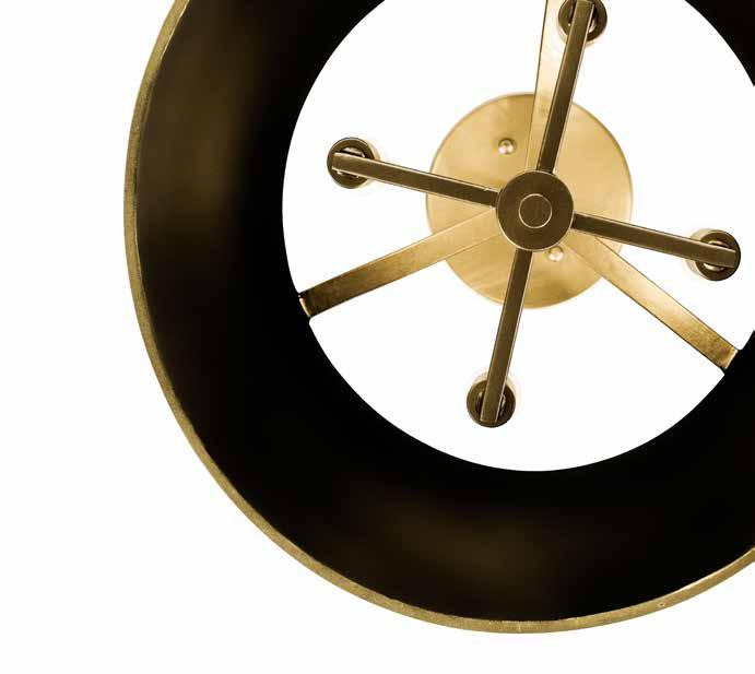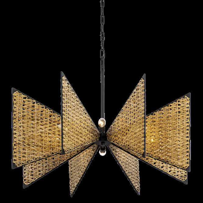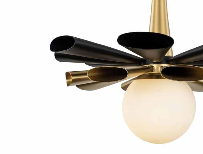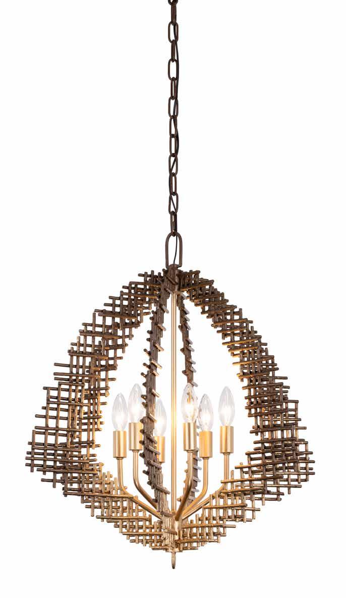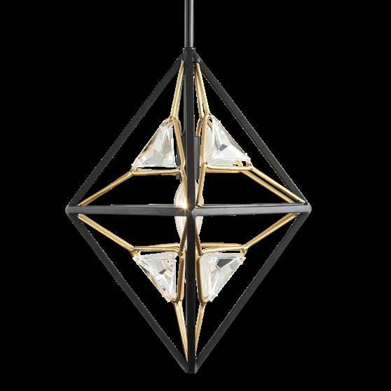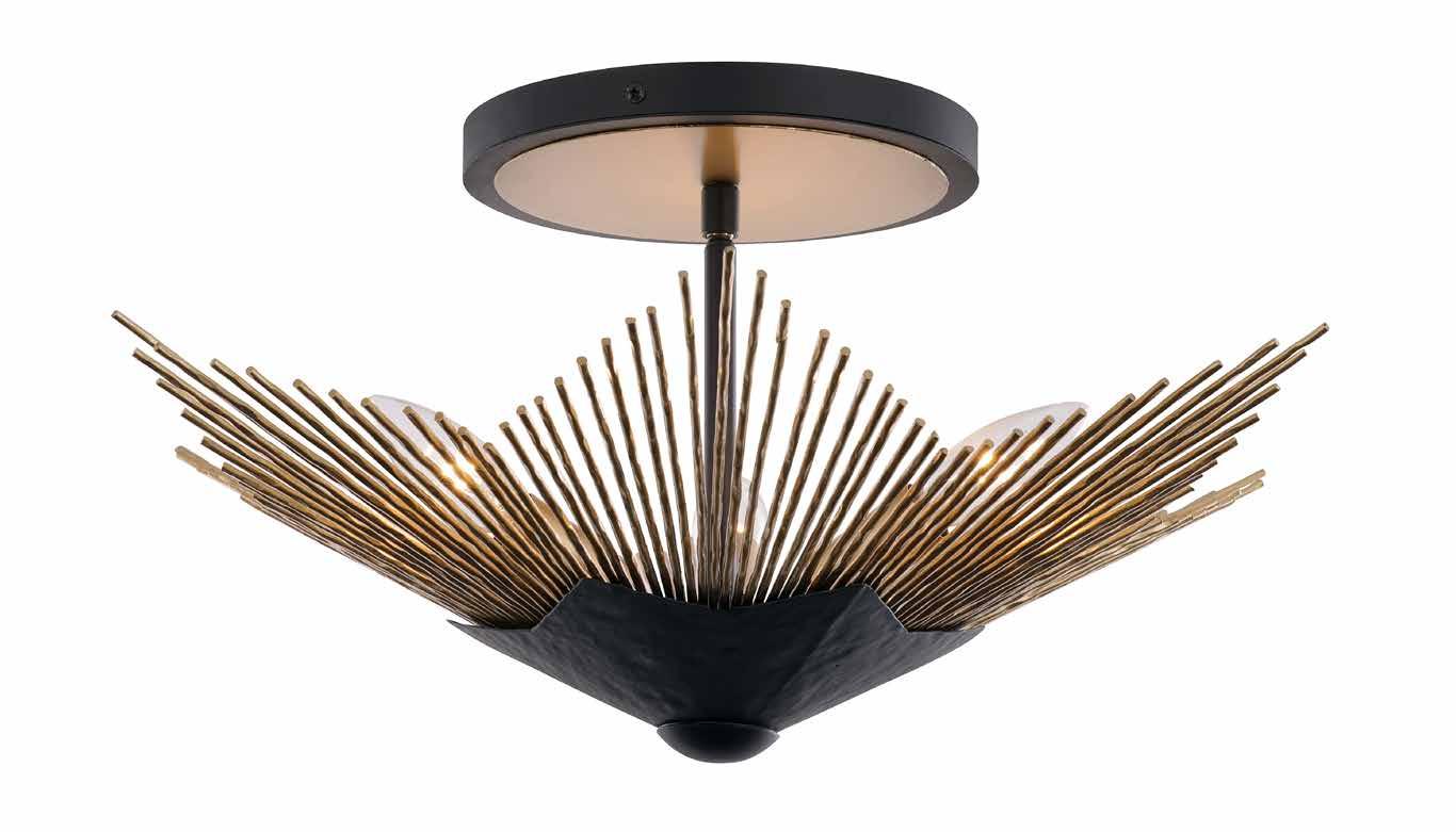 COMMANDING ATTENTION WITH THE CONFIDENCE OF COSMIC ROYALTY, ARISTOCRAT CHANNELS THE GLAMOUR OF ART DECO THROUGH A SUPERNOVA OF STRUCTURE. ITS DIMENSIONAL SIX-POINTED STAR MOTIF BURSTS FORWARD IN RADIANT FORM, WHILE HAND-HAMMERED SPINDLE— LIKE SOLAR FLARES FROZEN MID-GLOW— ALLOW LIGHT TO SHIMMER AND DANCE THROUGH. FINISHED IN A STATELY MIX OF HAND-APPLIED DARK BRONZE AND AGED GOLD, ARISTOCRAT IS BORN TO REIGN OVER ANY ROOM WITH A BALANCE OF DRAMA, DETAIL, AND DECO DIVINITY.