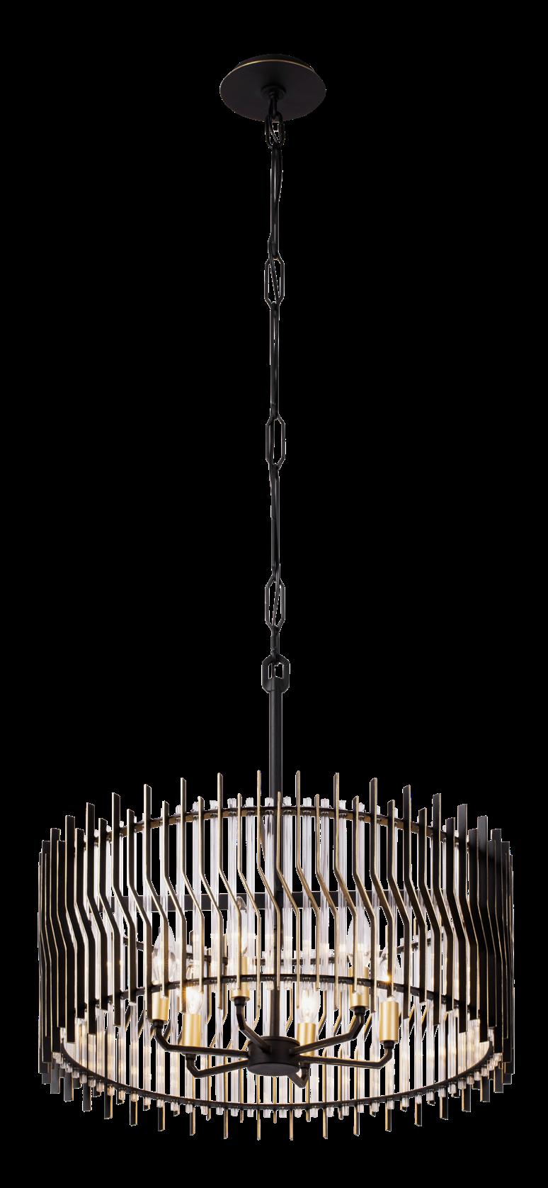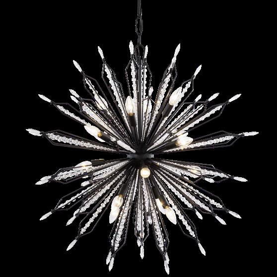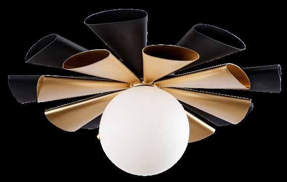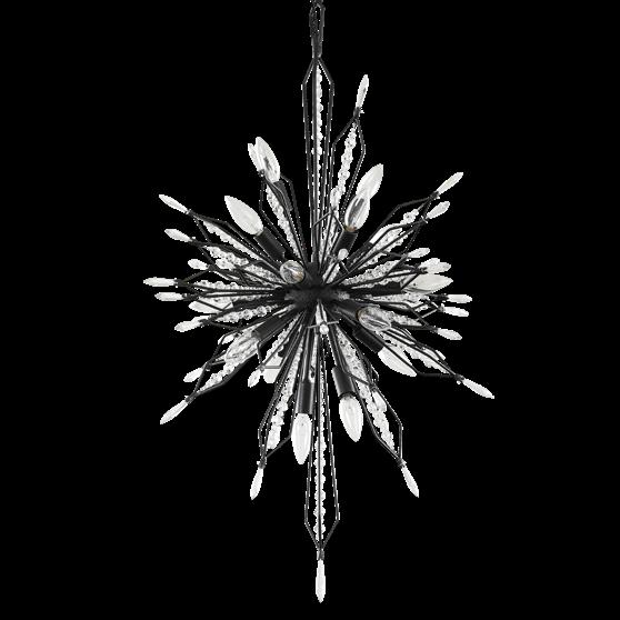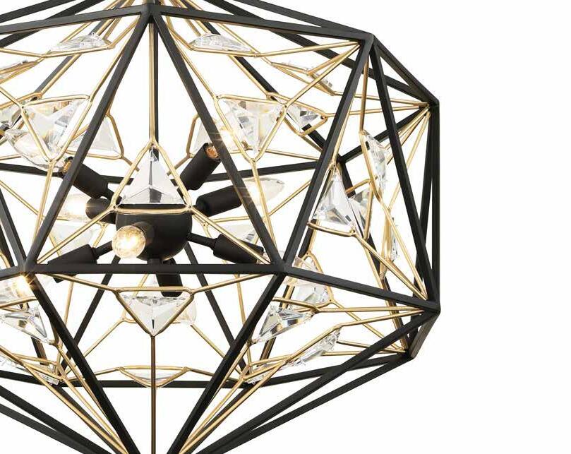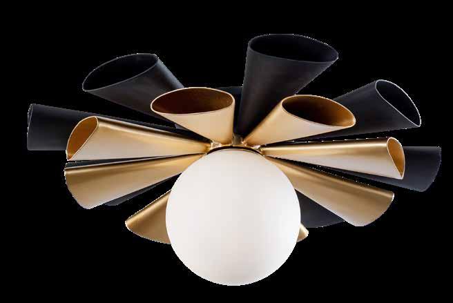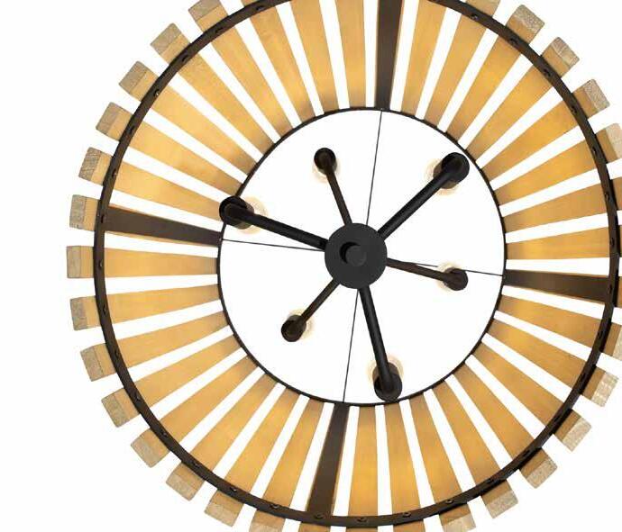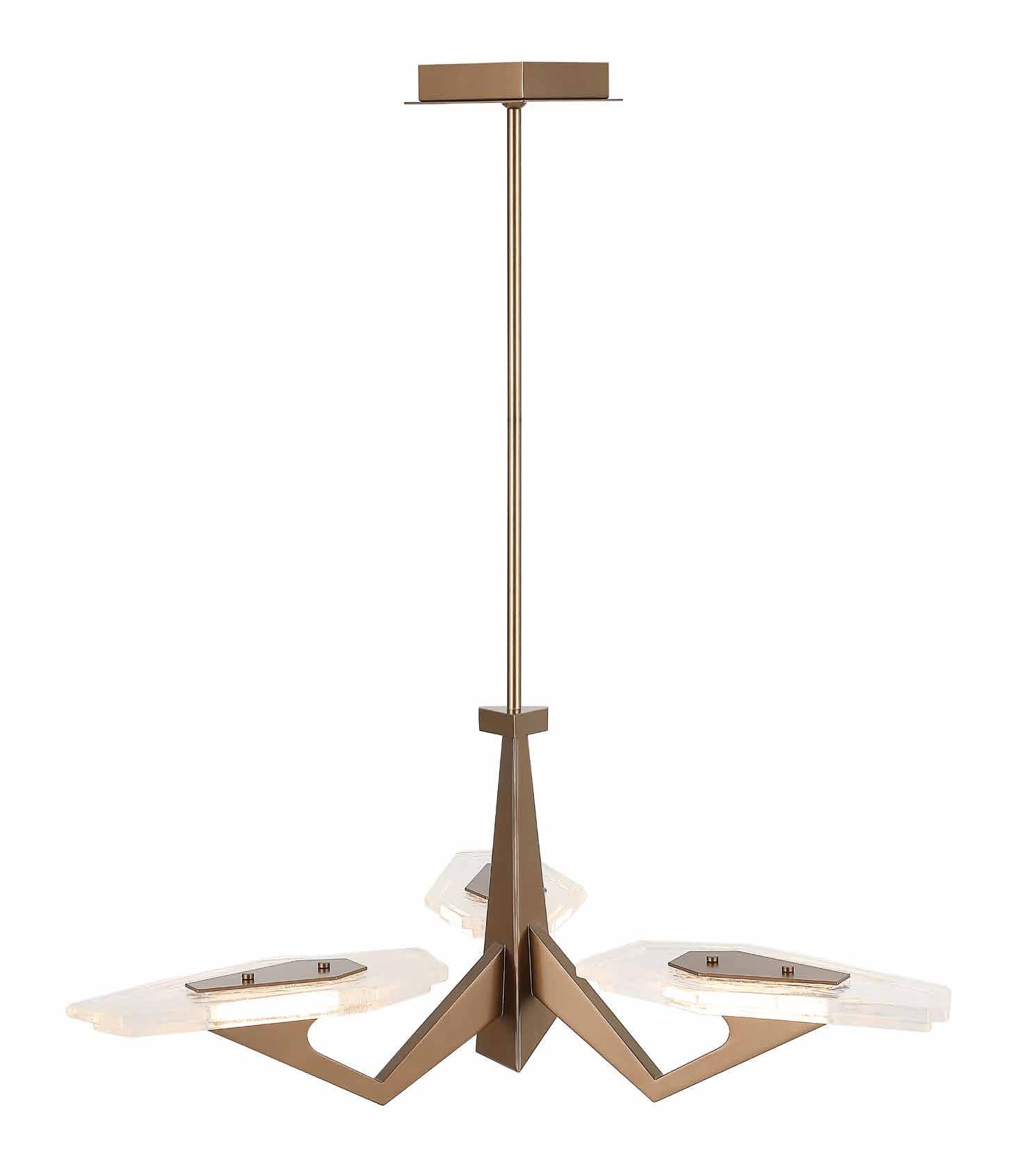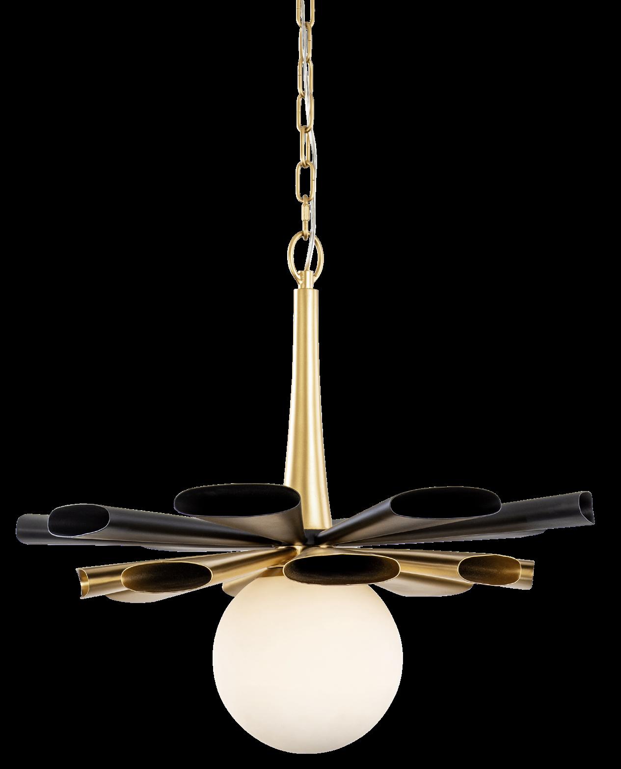 COMMANDING ATTENTION WITH THE CONFIDENCE OF COSMIC ROYALTY, ARISTOCRAT CHANNELS THE GLAMOUR OF ART DECO THROUGH A SUPERNOVA OF STRUCTURE. ITS DIMENSIONAL SIX-POINTED STAR MOTIF BURSTS FORWARD IN RADIANT FORM, WHILE HAND-HAMMERED SPINDLE— LIKE SOLAR FLARES FROZEN MID-GLOW— ALLOW LIGHT TO SHIMMER AND DANCE THROUGH. FINISHED IN A STATELY MIX OF HAND-APPLIED DARK BRONZE AND AGED GOLD, ARISTOCRAT IS BORN TO REIGN OVER ANY ROOM WITH A BALANCE OF DRAMA, DETAIL, AND DECO DIVINITY.