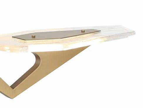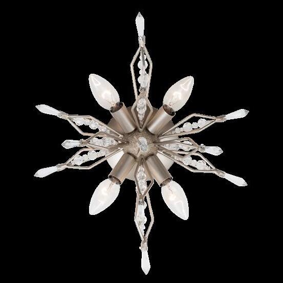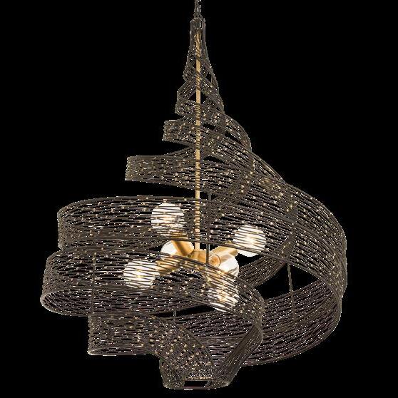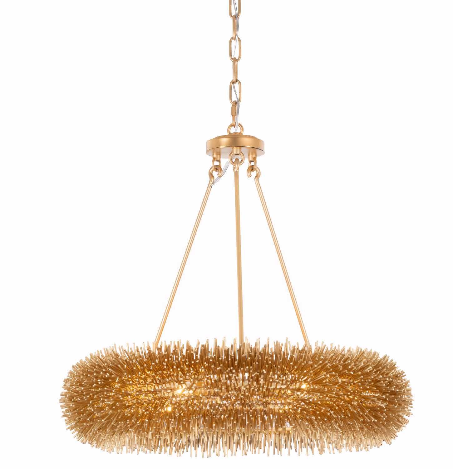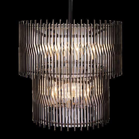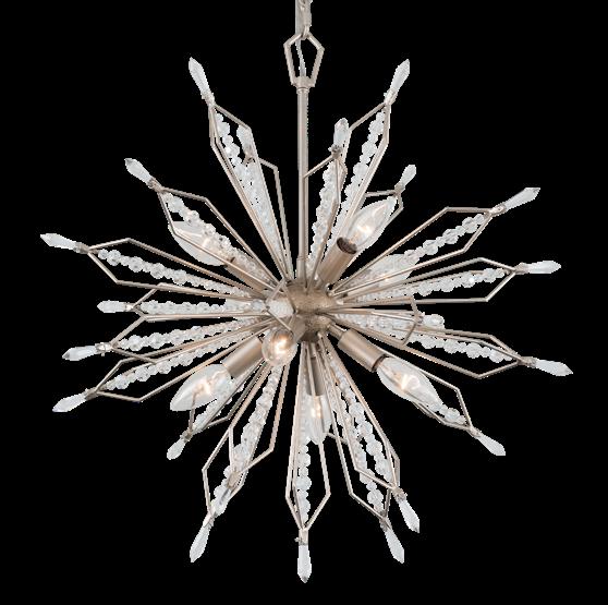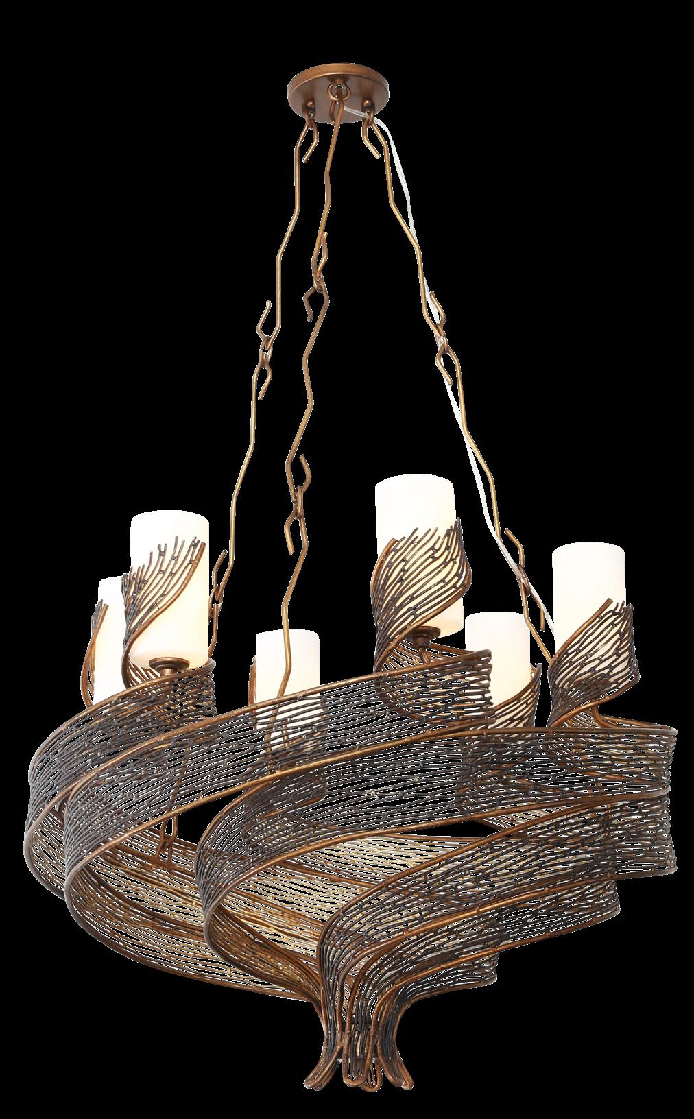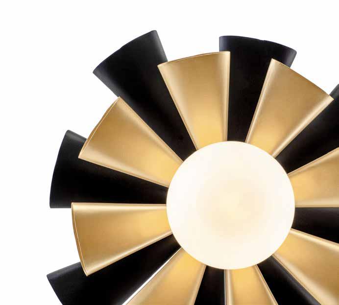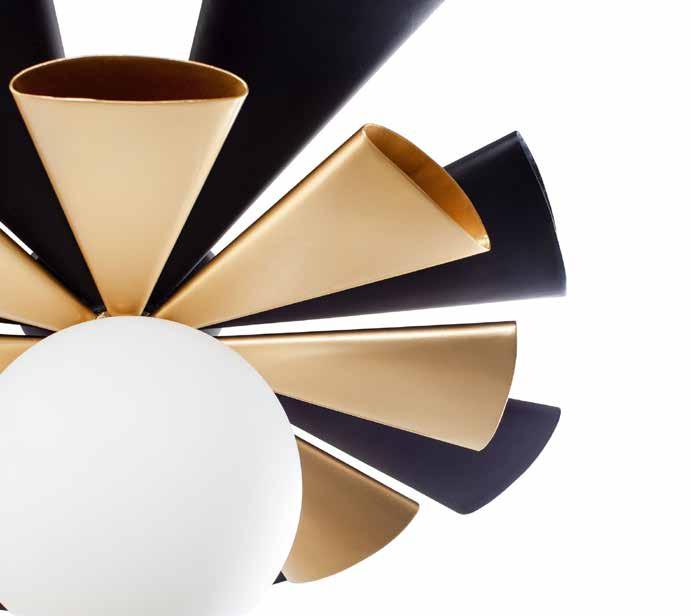 COMMANDING ATTENTION WITH THE CONFIDENCE OF COSMIC ROYALTY, ARISTOCRAT CHANNELS THE GLAMOUR OF ART DECO THROUGH A SUPERNOVA OF STRUCTURE. ITS DIMENSIONAL SIX-POINTED STAR MOTIF BURSTS FORWARD IN RADIANT FORM, WHILE HAND-HAMMERED SPINDLE— LIKE SOLAR FLARES FROZEN MID-GLOW— ALLOW LIGHT TO SHIMMER AND DANCE THROUGH. FINISHED IN A STATELY MIX OF HAND-APPLIED DARK BRONZE AND AGED GOLD, ARISTOCRAT IS BORN TO REIGN OVER ANY ROOM WITH A BALANCE OF DRAMA, DETAIL, AND DECO DIVINITY.