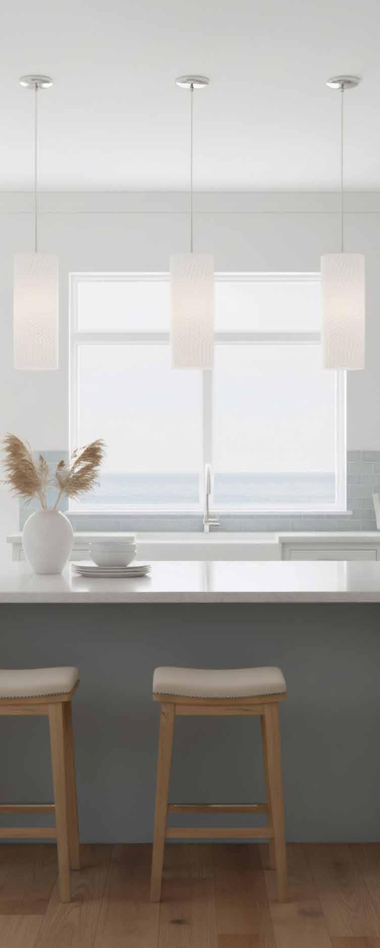 HER STANDOUT FEATURE? GORGEOUS WHITE RECYCLED-GLASS GLOBES THAT GLOW WITH A SOFT, OPALINE WARMTH. AND BECAUSE WE BELIEVE GREAT DESIGN SHOULD ALSO BE EASY TO LIVE WITH, EVERY FIXTURE IS ENGINEERED FOR SIMPLE, NO-FUSS RE-LAMPING.