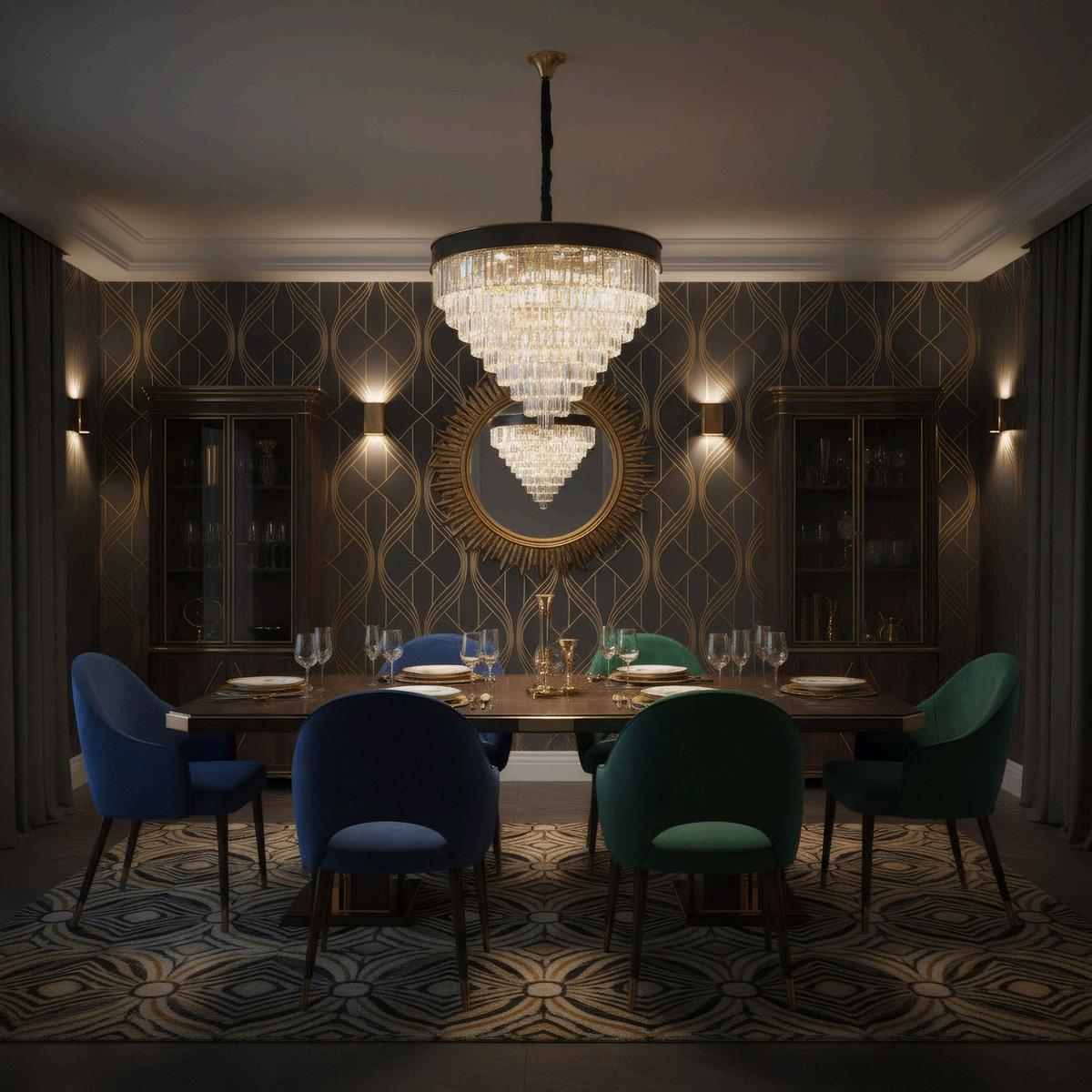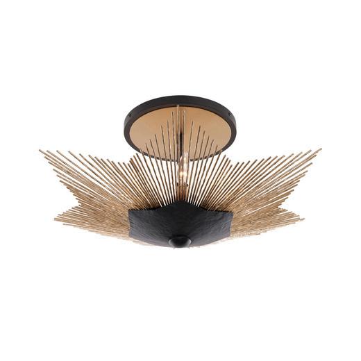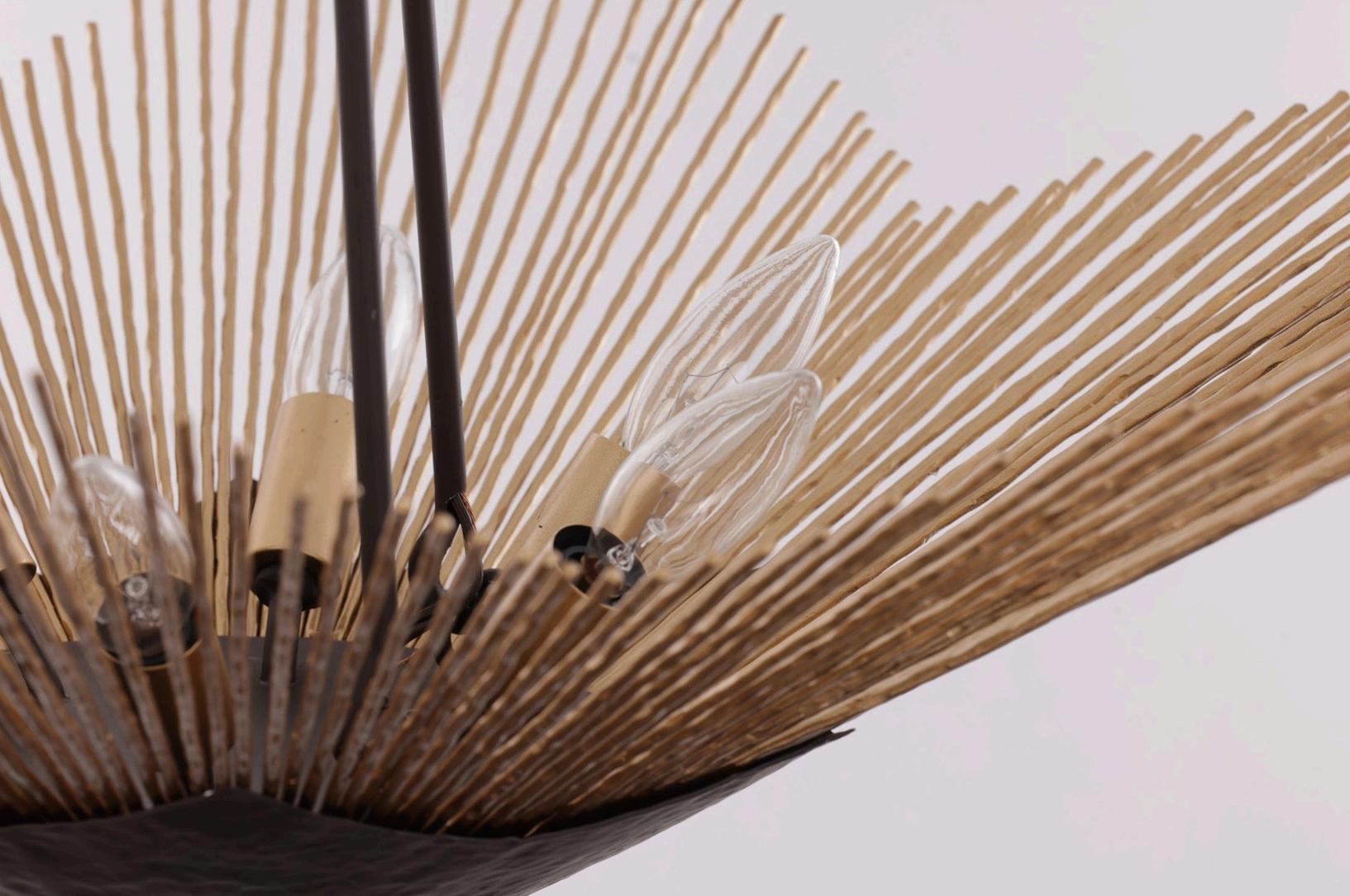 Asix-pointedstarburstsforwardinDecobrilliance,while hand-hammeredspindlescastlightineverydirection. Finishedindarkbronzeandagedgold,Aristocratbalances drama,detail,andundeniablepresence