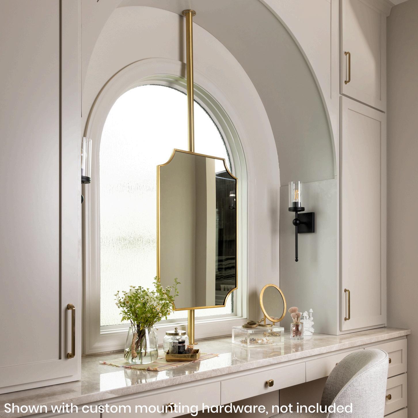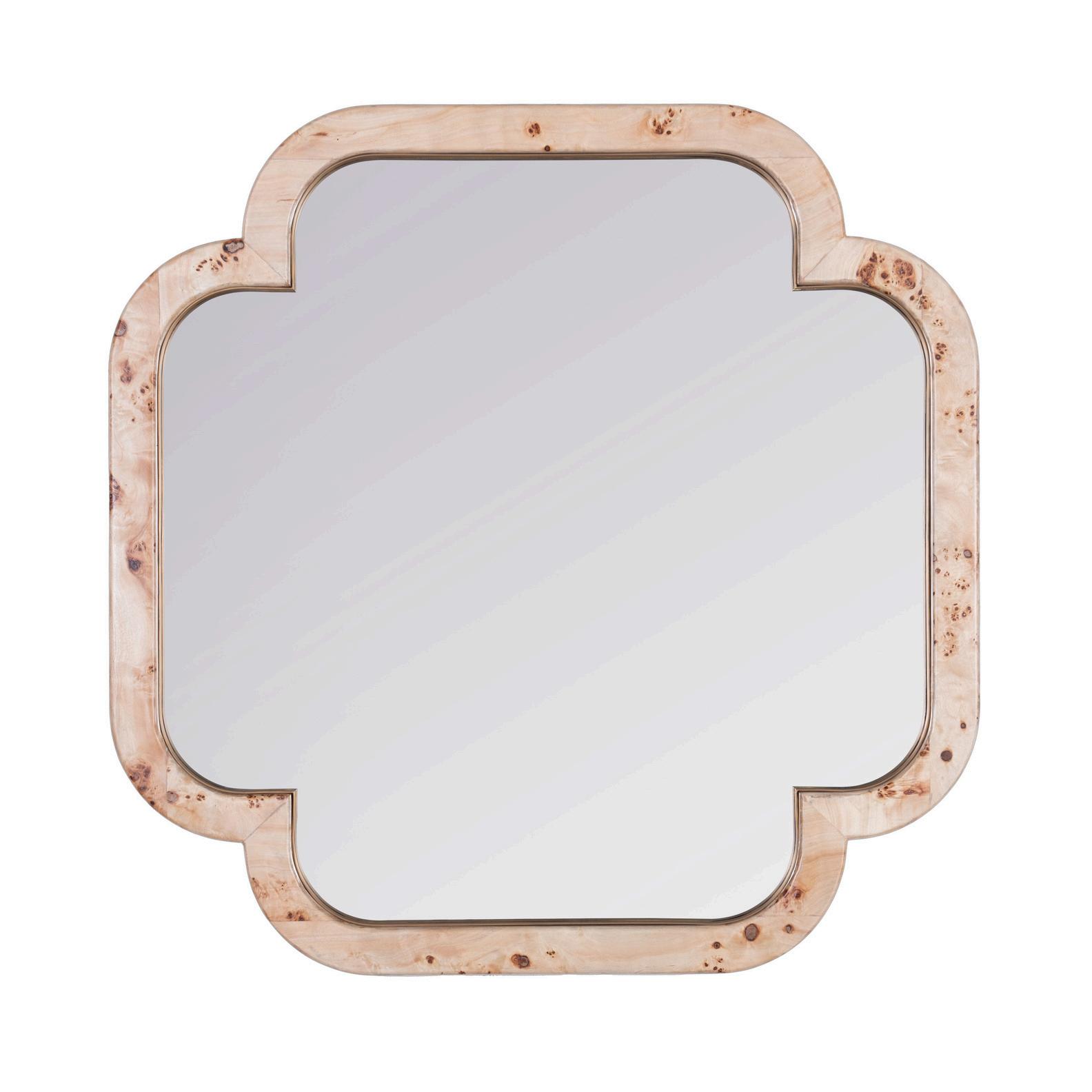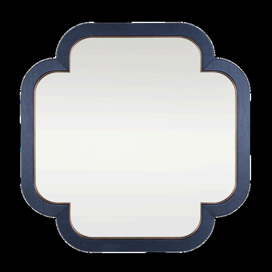 DesignedincollaborationwithTamaraDay,theSwiss MirrorblendsrichBlueGrassclothorwarmPoplarBurlwith WeatheredBrassdetailingforalookthat’sequalparts textureandglamour.