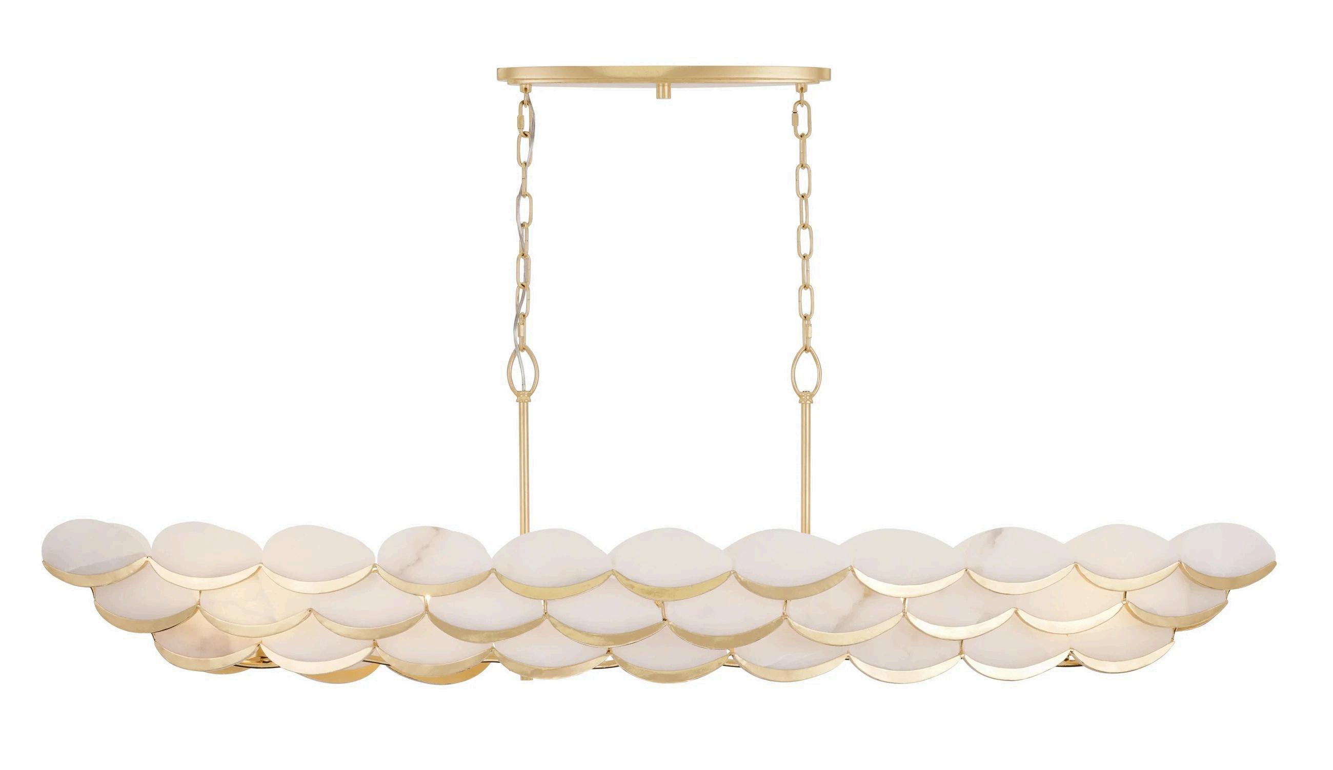 HighTidepairsripplingSpanishalabasterovalswitha sleekmodernframe bringingcoastalcalmand contemporarydramainoneperfectlytimedsplash. Availibleinmultiplelinearsizes,pendantandvanitylight.