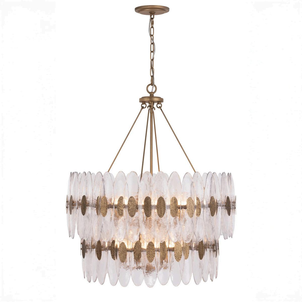 Texturediceglassandhammeredaccentsbecome luminousartinAurora,nowinHavanaGoldandofferedin multiplesizeswithacoordinatingsconce