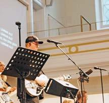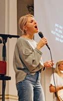 Sanna Välipakka leder lovsång vid ett möte i Stockholm. Foto: Kelley Skolos
